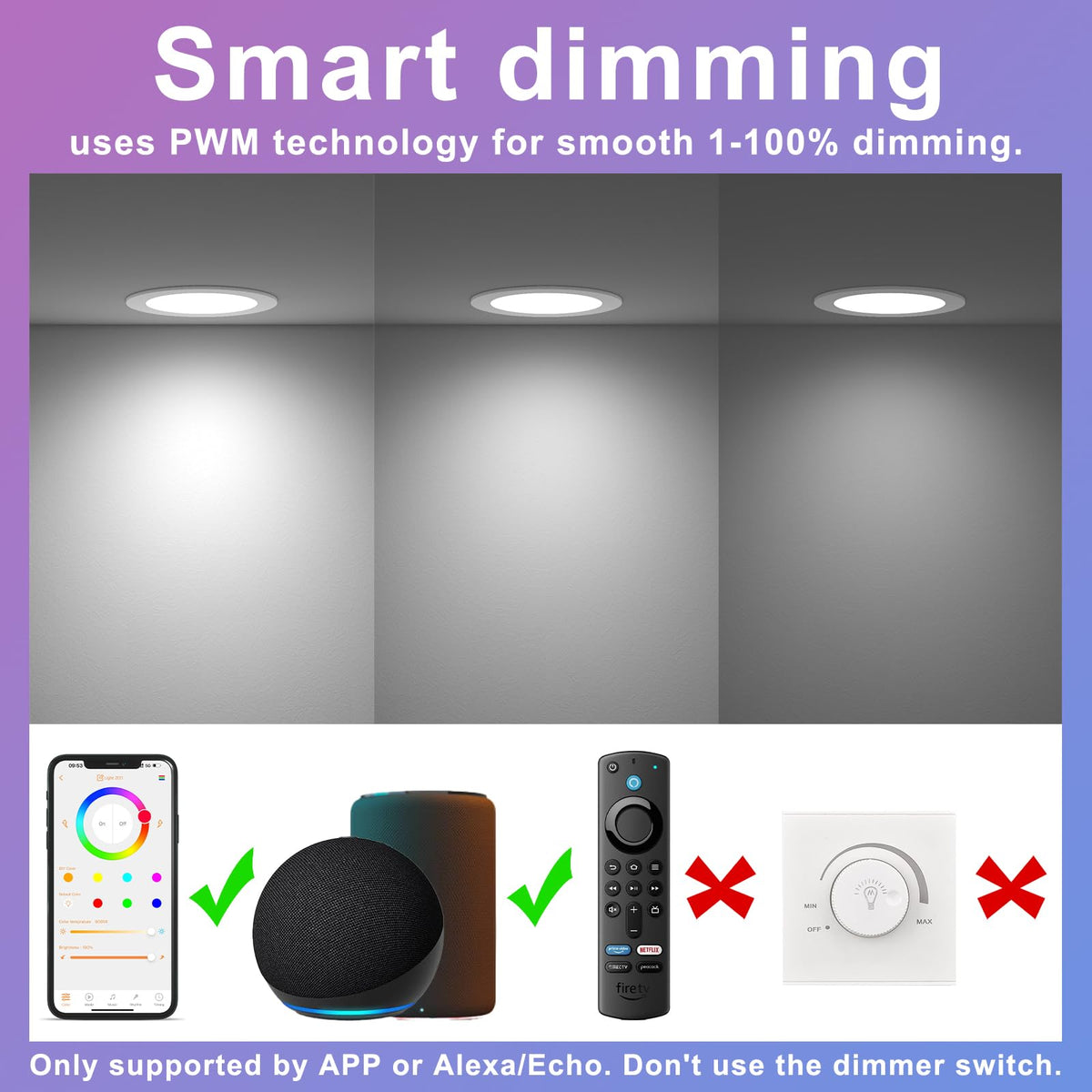 Siksog Smart Recessed Lighting 4 Inch Rgbcw Color Changing 12W Led Downlight With Junction Box,1000 Lumen Recessed Ceiling Light