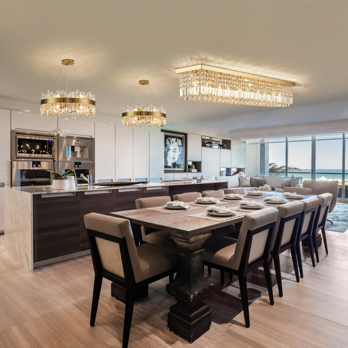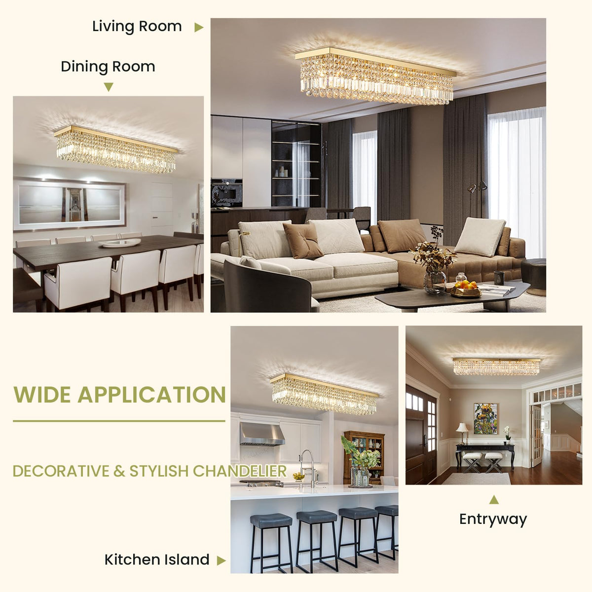 Elevate your living space with the exquisite Siljoy Gold Crystal Chandelier, a stunning blend of modern elegance and superior craftsmanship. This luxurious chandelier features high-quality K9 crystals that refract light beautifully, creating an enchanting and opulent atmosphere in your dining room, living room, kitchen island, hallway, bedroom, or office. With its flush mount style, it seamlessly integrates into any decor while providing ample illumination.