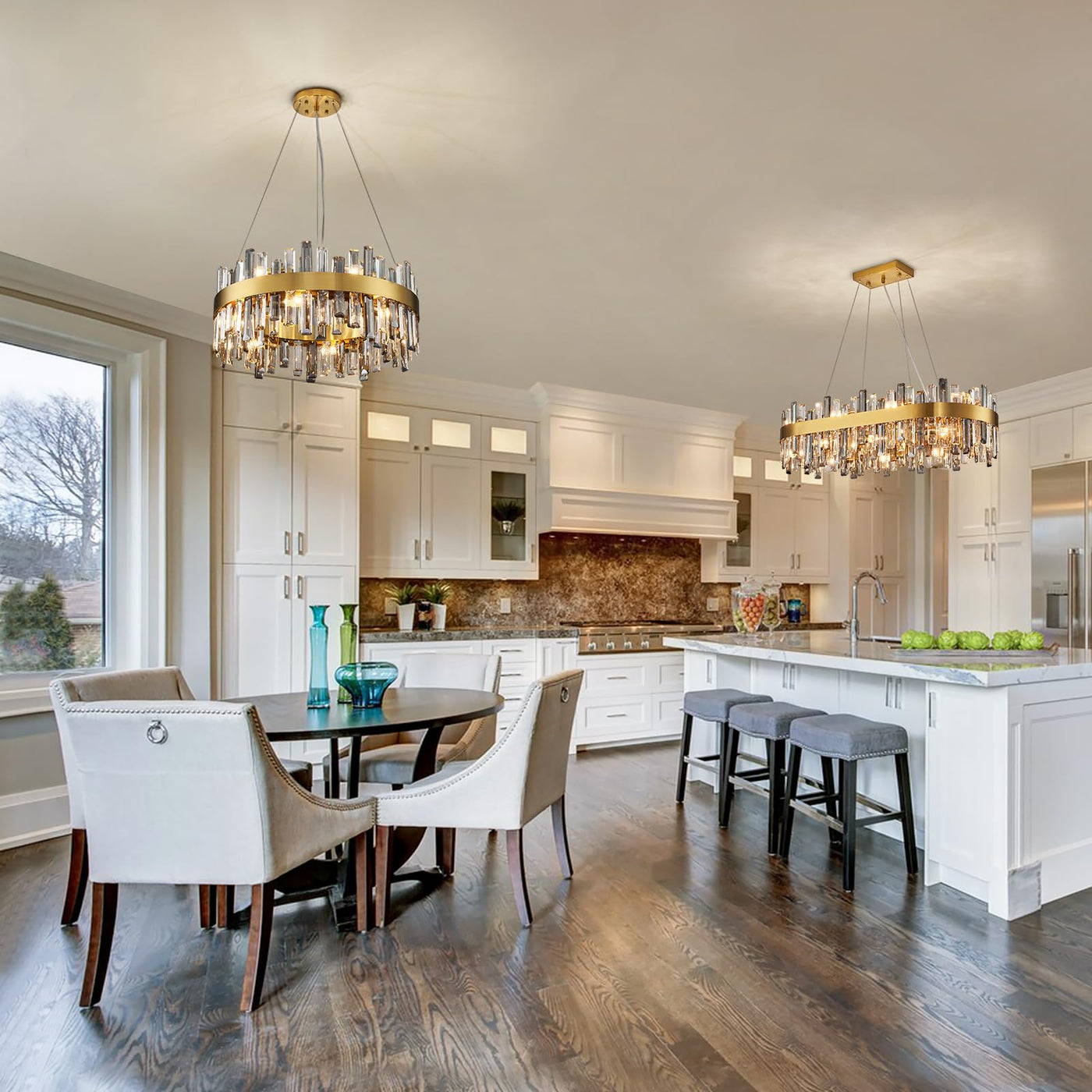 Q: What styles of decor does this chandelier complement?A: This elegant chandelier complements a variety of decor styles, including modern, European, industrial, farmhouse, and Nordic aesthetics. It is perfect for use in dining rooms, living rooms, kitchen islands, bedrooms, entryways, and more.