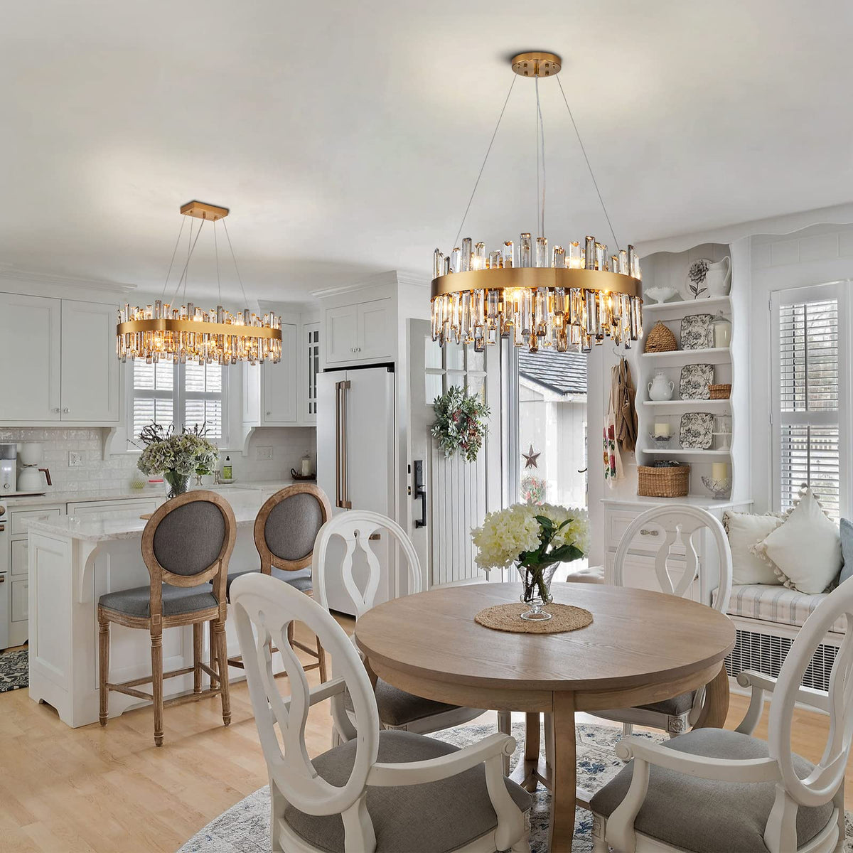 Siljoy 12-Light Modern Crystal Chandelier, Brass Gold, Adjustable Pendant Light, D23.6''