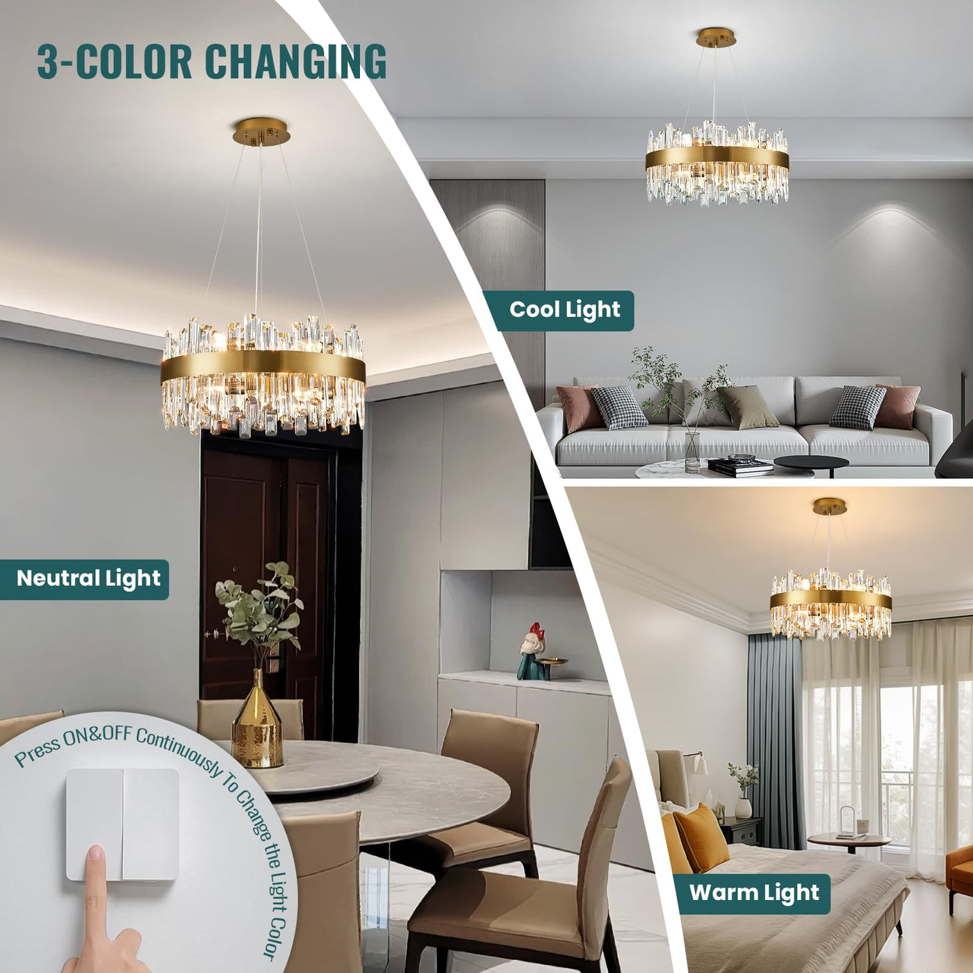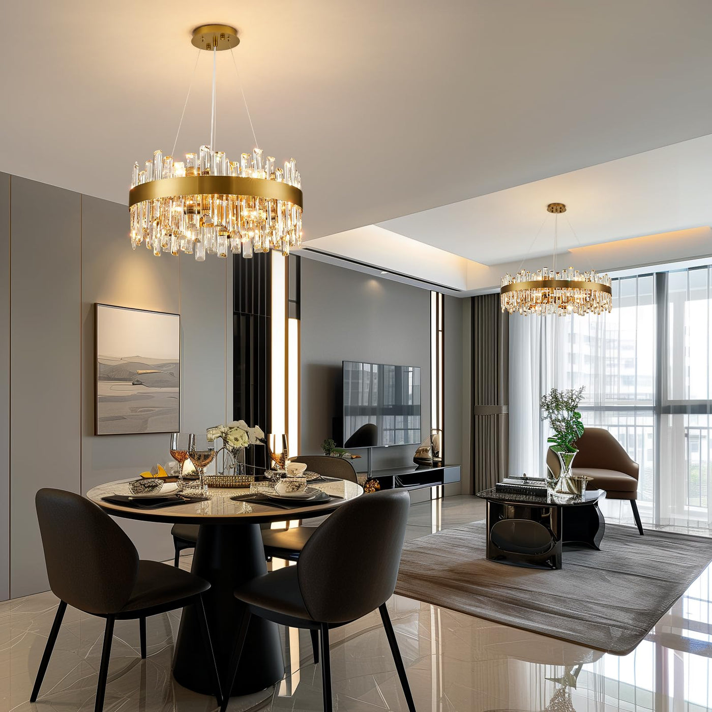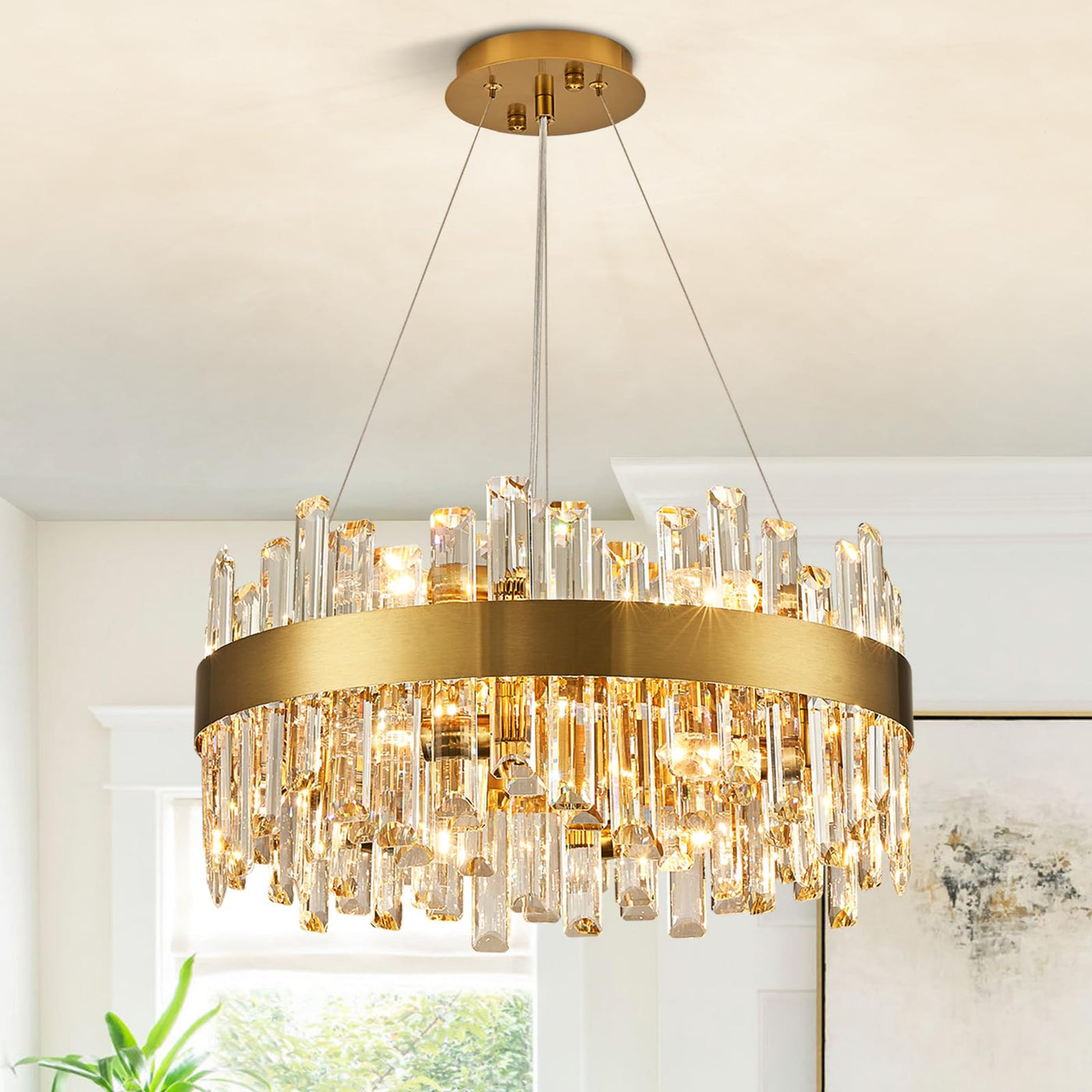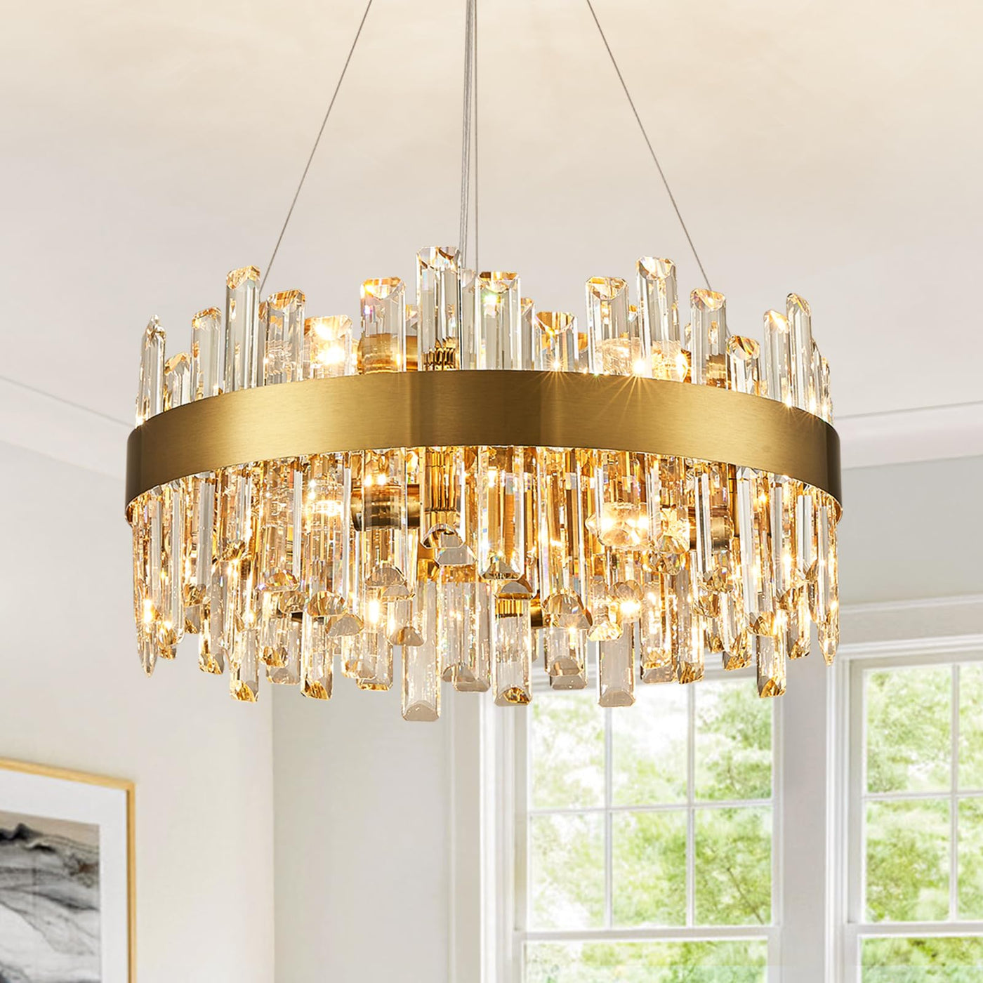 Siljoy 12-Light Modern Crystal Chandelier, Luxury Brass Gold Pendant Light For Dining Room