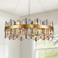 Siljoy 16-Light Modern Crystal Chandelier, Brass Gold Flush Mount Pendant For Dining Room D31.5''