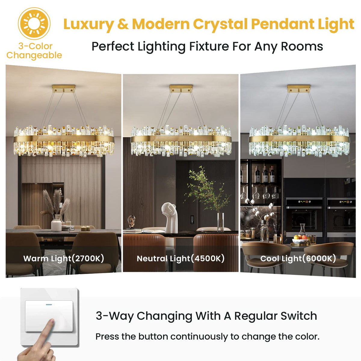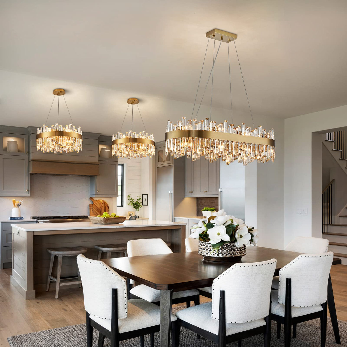 - ? **Elegant Design:** Featuring beautiful raindrop crystals that refract light to create a warm and inviting ambiance, this chandelier is ideal for dining rooms, living rooms, kitchens, bedrooms, and more.