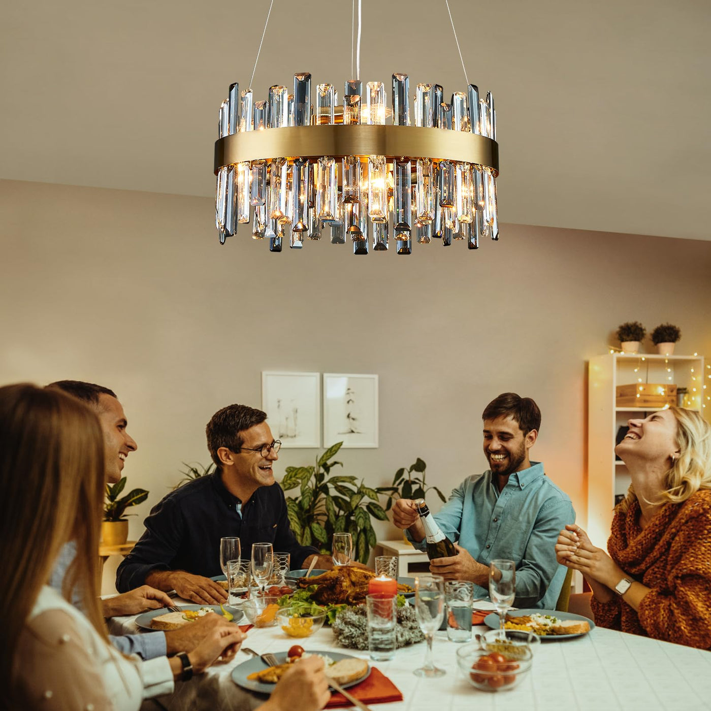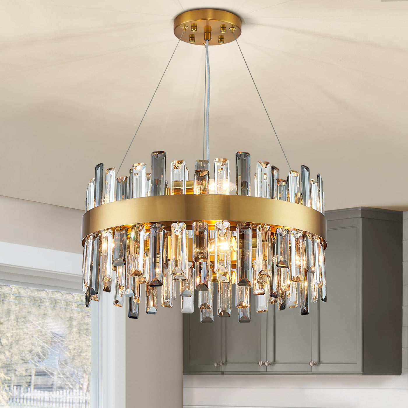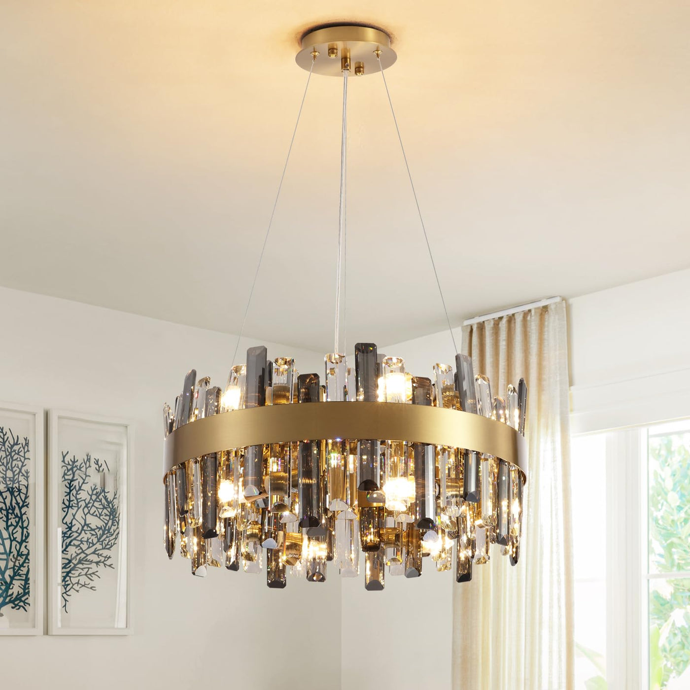 Siljoy 19.7" Brass Gold Crystal Chandelier, 12-Light Pendant Light For Living Room & Dining Room