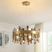 ??Modern Gold Chandelier?: This luxury round chandelier combines stylish and modern elements with eye-catching results. Perfect for enhancing your home decor, it not only brings a sense of art to your space but also creates a glamorous ambiance.