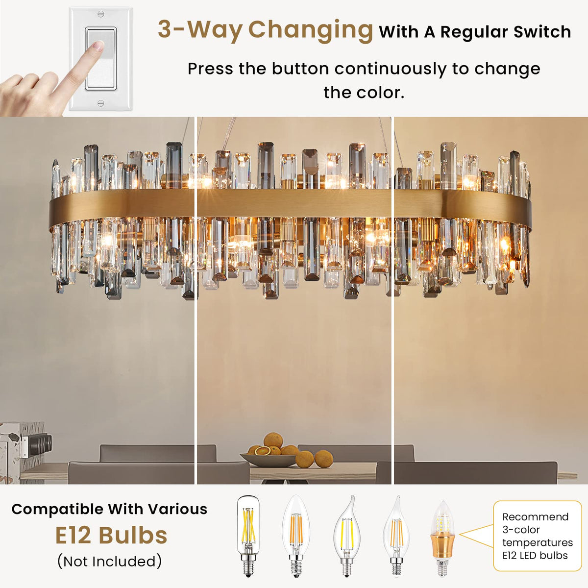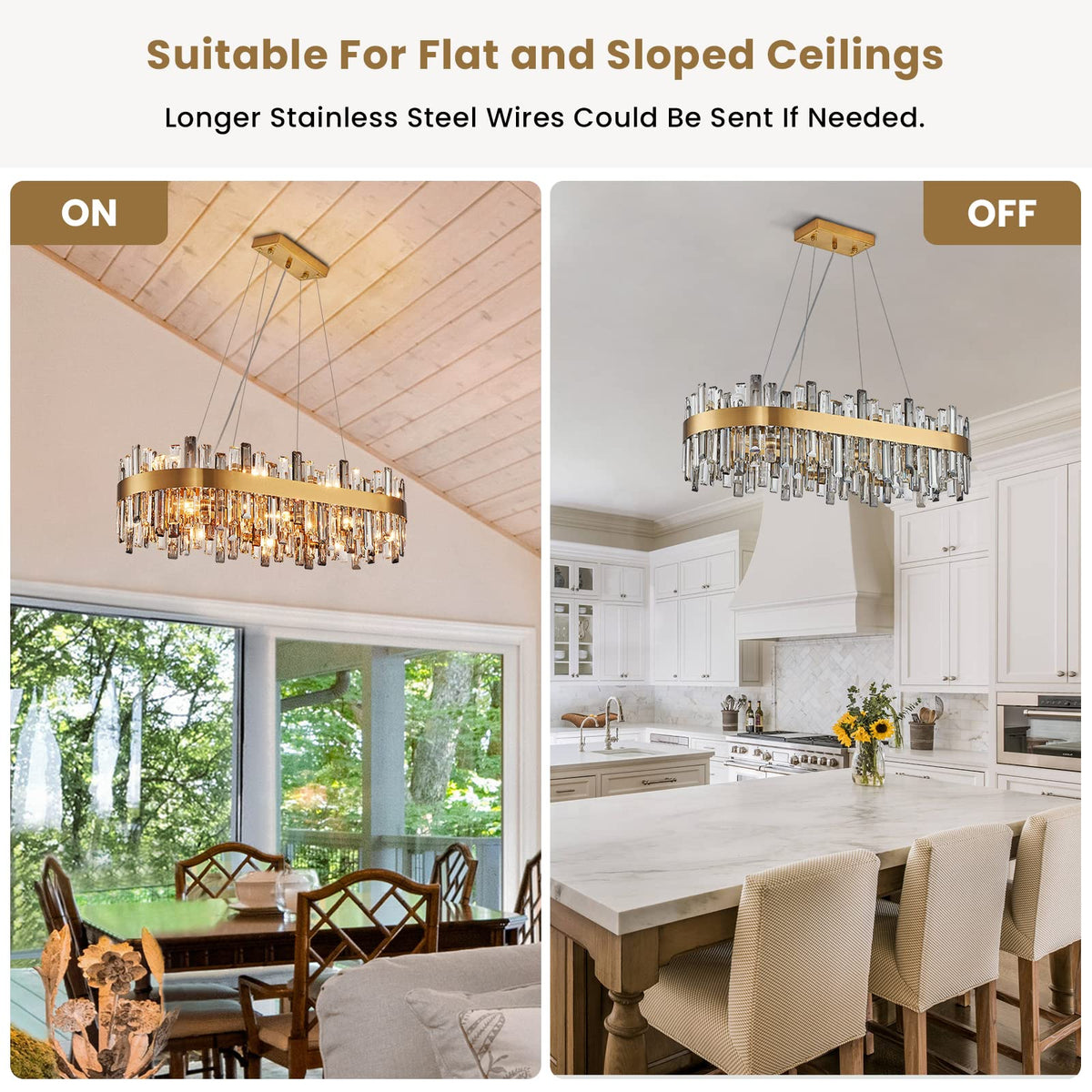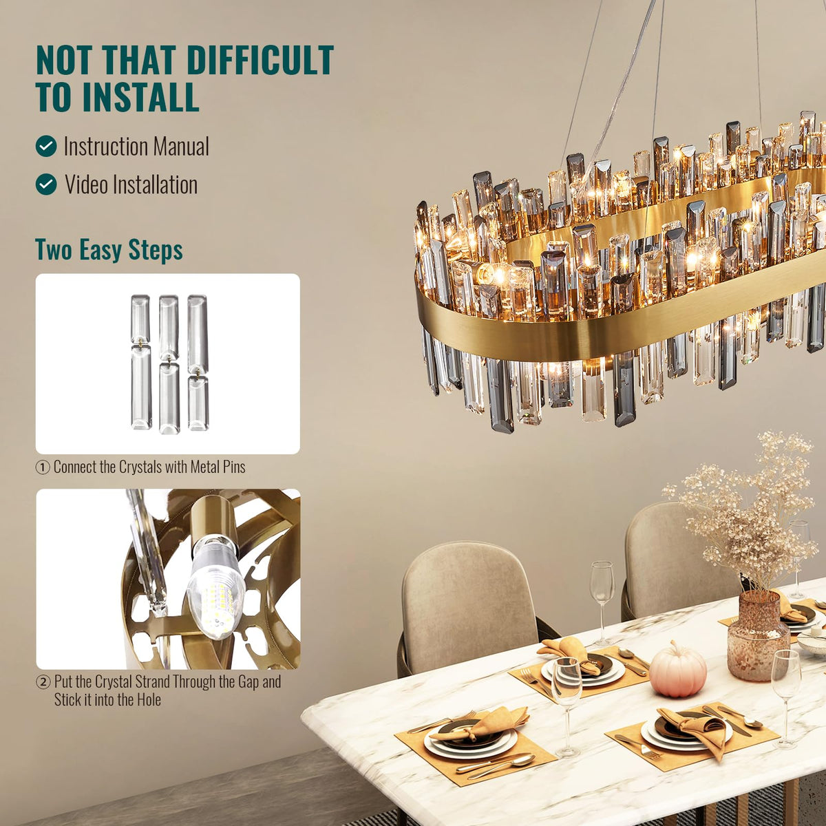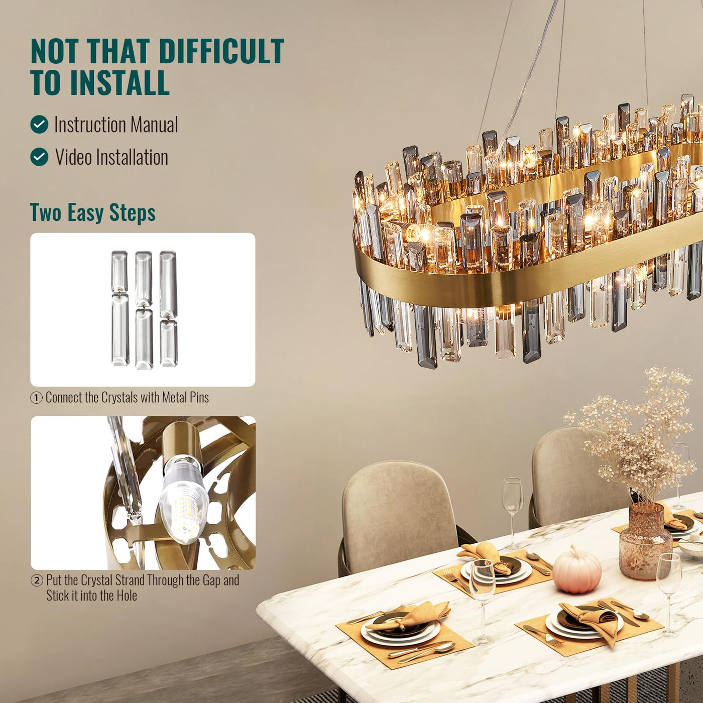 Siljoy 35.4'' Gold Oval Crystal Chandelier, 16-Light Modern Brass Pendant For Dining Room