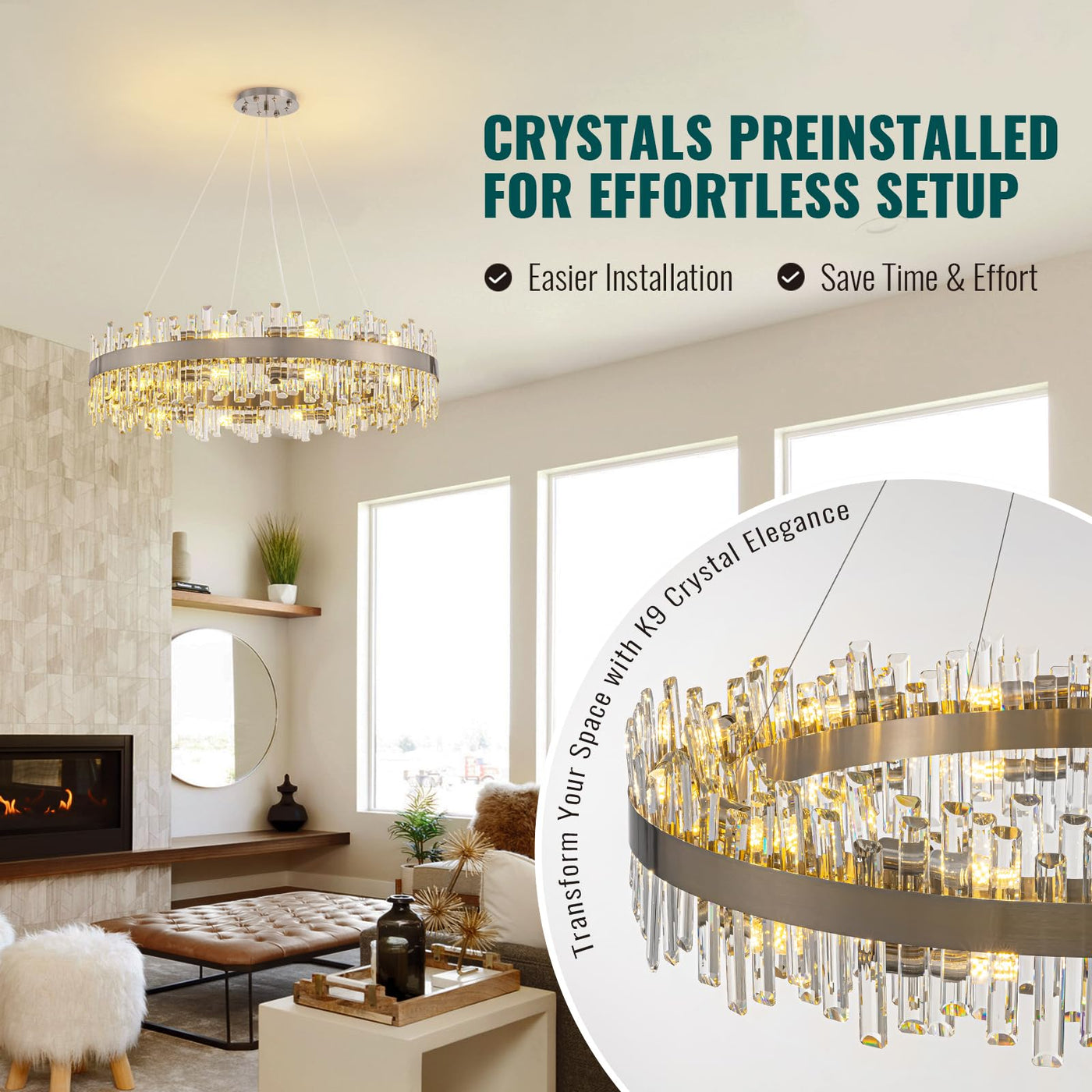 Product Description This luxury brushed nickel oval raindrop crystal chandelier light fixture could perfectly illuminate your house, bringing a modern and contemporary atmosphere and creating a stylish & warm ambience in your house. It also adds charm and aesthetic to your living area and it can be perfectly matched with decoration styles! Specifications: Type: Crystal Chandelier Style: Modern, Contemporary Fixture Finish: Brushed Nickel Material: Metal, K9 Crystal Light Source: 20 x E12 (Max 40W, not included) Dimension: D39.4''(100cm) x H9.8''(25cm) Switch Type: Push Button Mount Type: Ceiling Mount Sloped Ceiling Available: Yes Voltage: AC 110V Weight: 46.3 lb Application: Living Room,Dining Room, Kitchen Island, Bathroom, Entryway, Hallway, Bedroom, Office, etc. Packing list * Lamp Body x 1 * Crystal Strands * A pair of Gloves * Mounting Hardware x 1 * An Installation Manual Note: 1. Full Assembly Required with time and effort, But it will be definitely worth it when you have done it. Please check carefully the instruction manual before installation and follow close to it. 2. Please allow 1-2CM differs due to manual measurement. 3. Due to lighting effects, monitor's brightness/contrast settings etc,there could be some slight differences in the color tone of the pictures and the actual item. ? Due to the unavoidable wear and tear during transit, free replacement if found any damage, we promise to give you a 100% sincere after service.