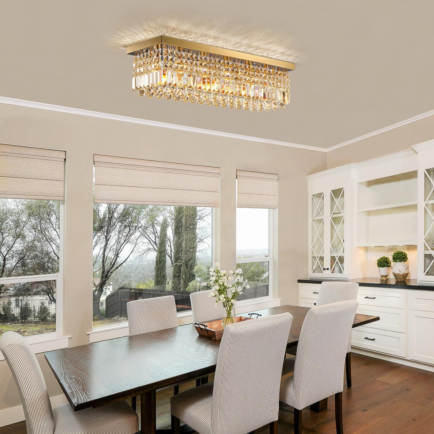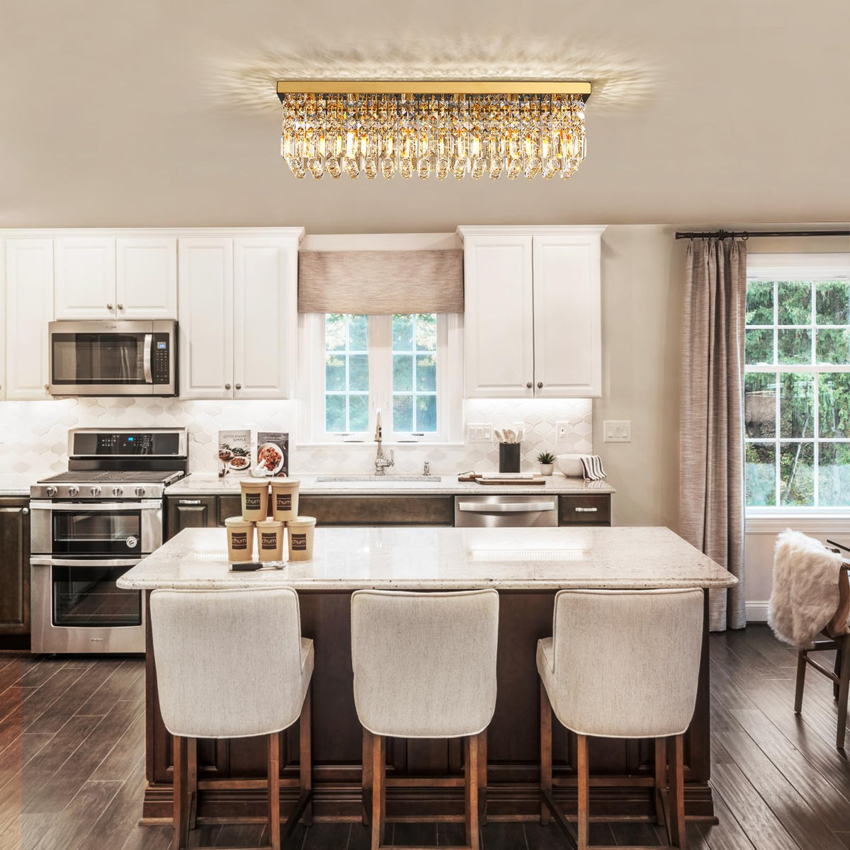 Siljoy 6-Light Gold Rectangular Flush Mount Ceiling Light, Modern Raindrop Chandelier
