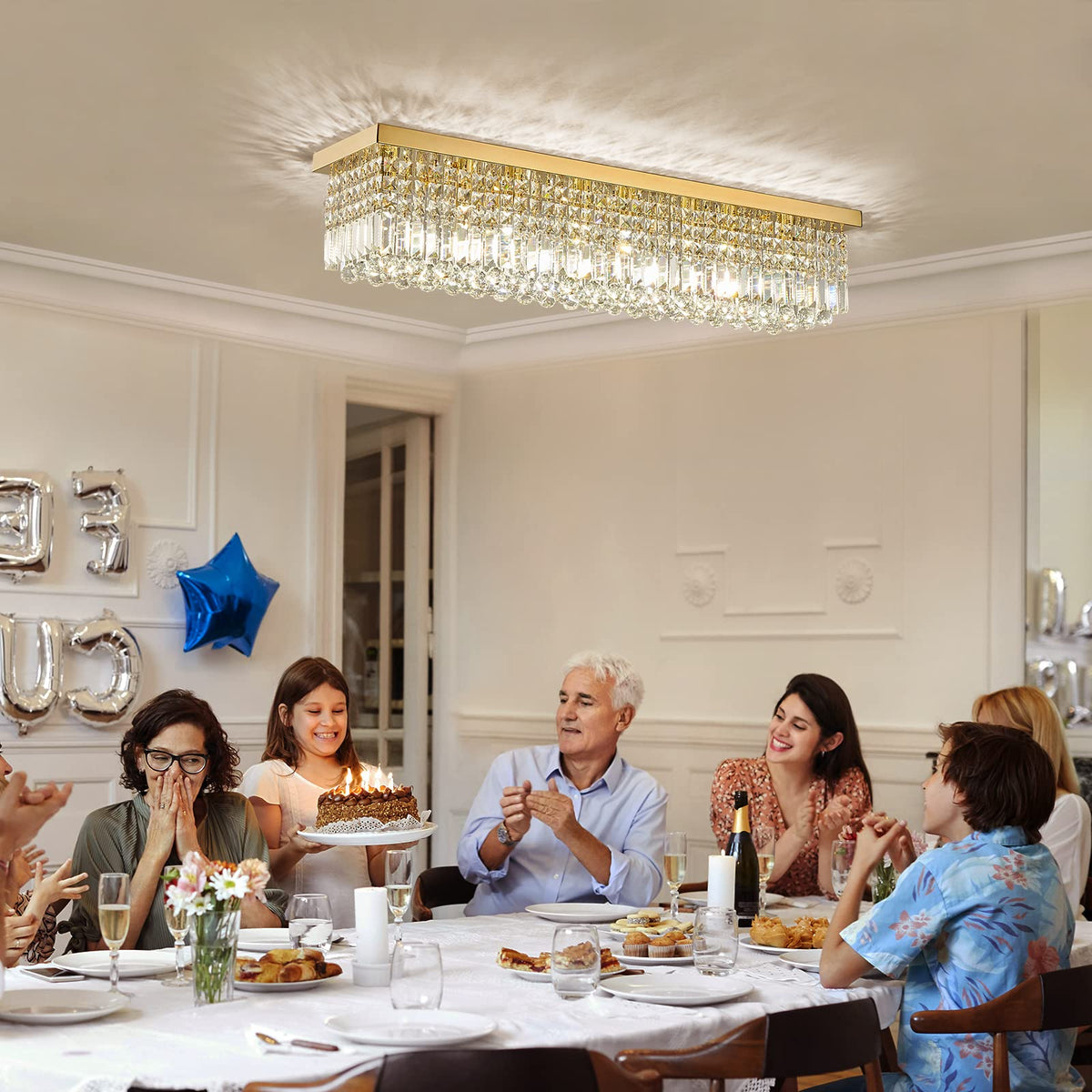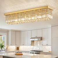 Siljoy 8-Light Gold Rectangular Flush Mount Ceiling Light Modern Crystal Chandelier 40''