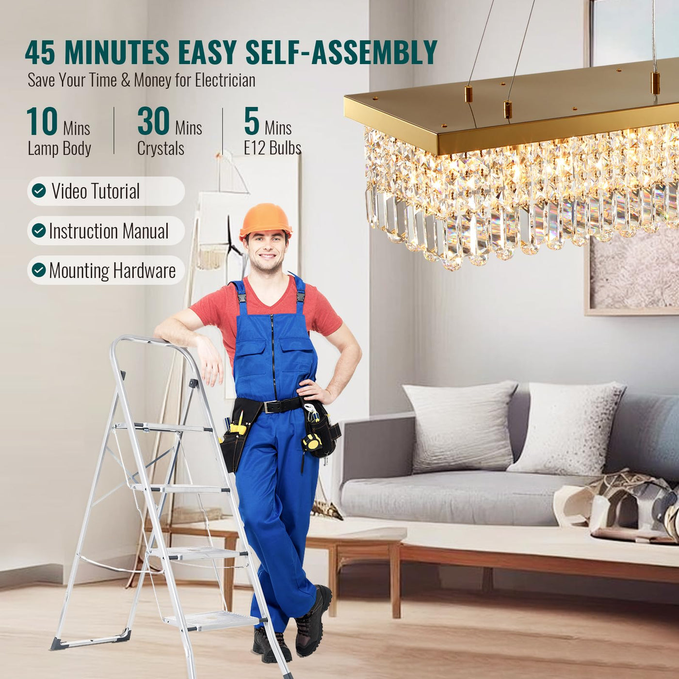 Q: Is installation difficult for this chandelier?A: No, installation is straightforward. The chandelier comes with all necessary mounting hardware, and a professional installation video is available to guide you through the process, making it easy to install without needing an electrician.