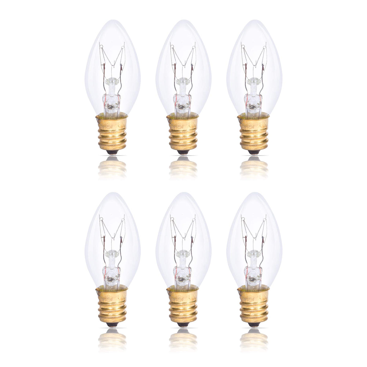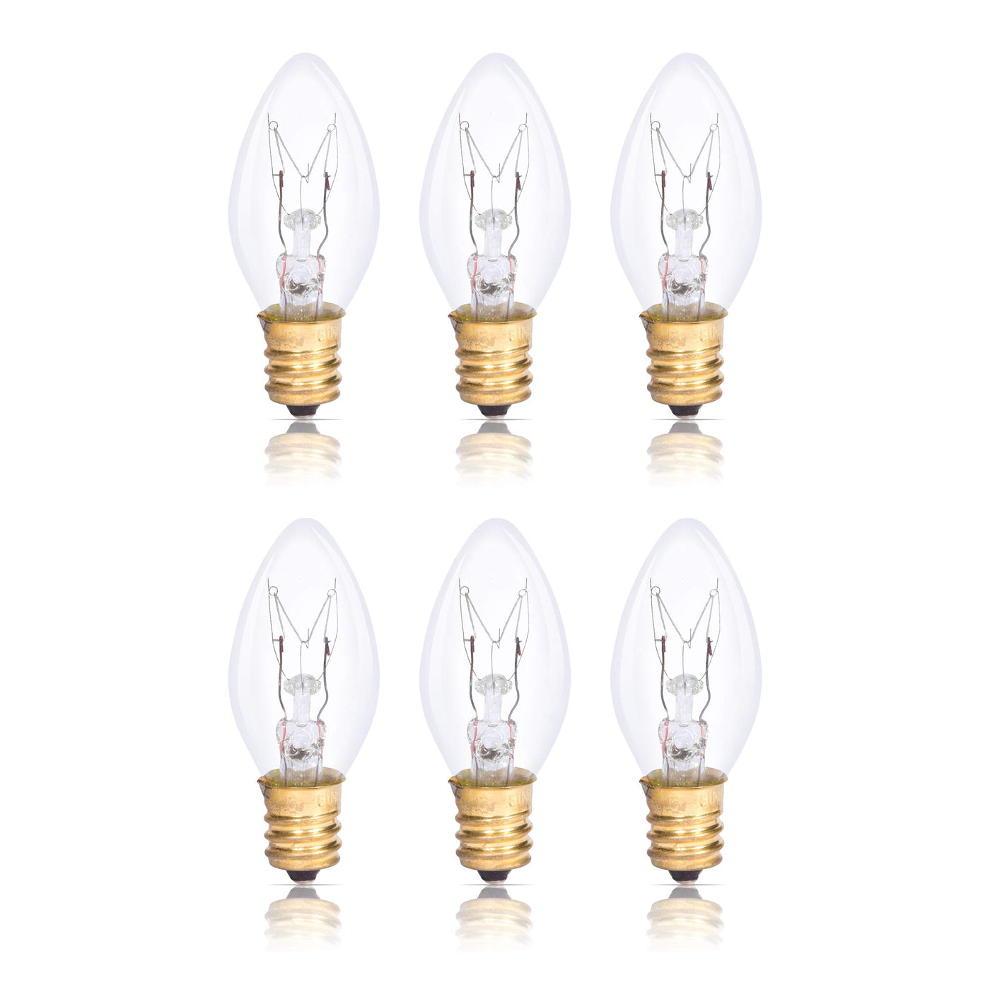 Simba Lighting C7 15W Replacement Bulb (6 Pack) For Himalayan Salt Rock And Basket, Plug In Aromatic Wax Warmer, Night Light, Clear Candle Shape, 120V, E12 Candelabra Base, Dimmable, 2700K Warm White