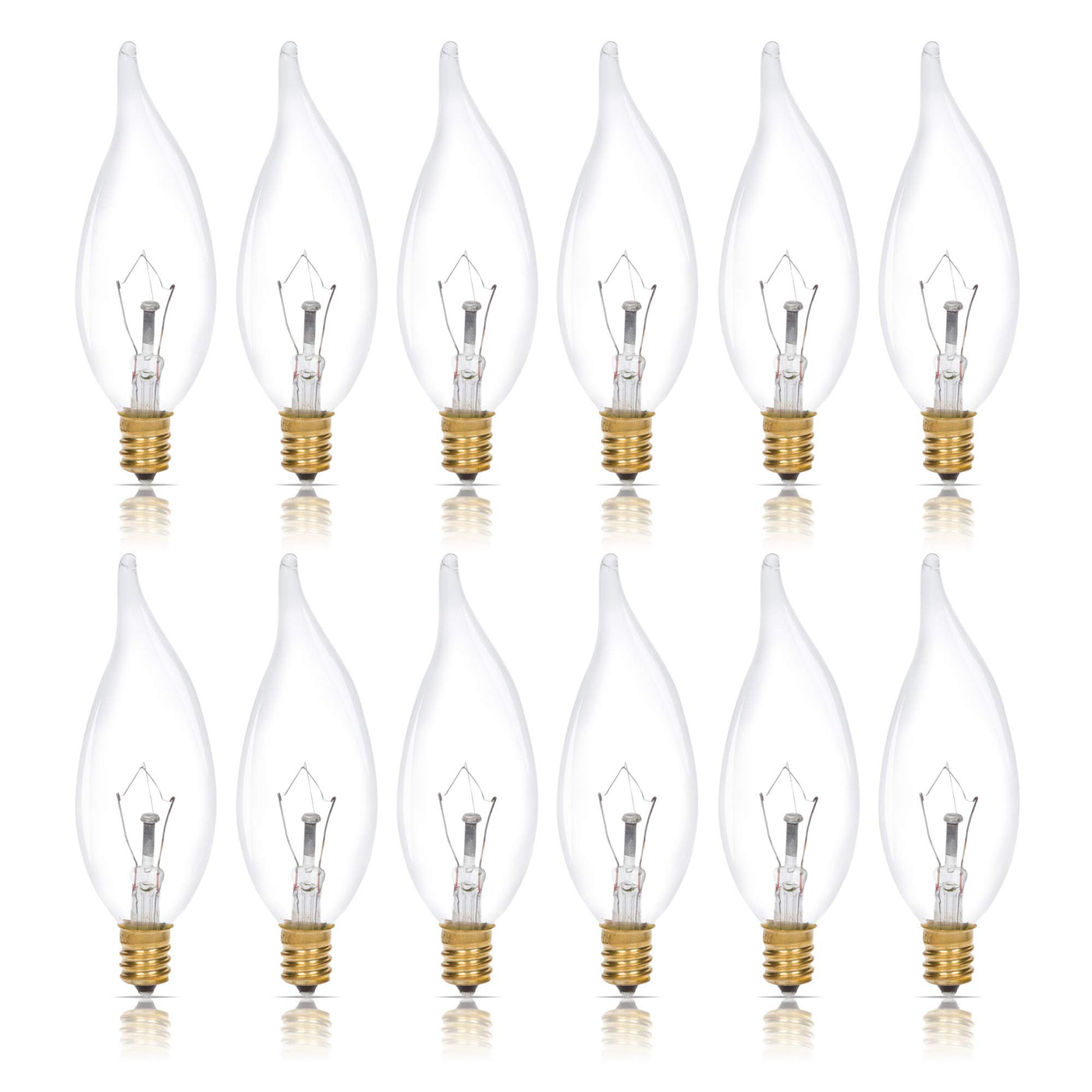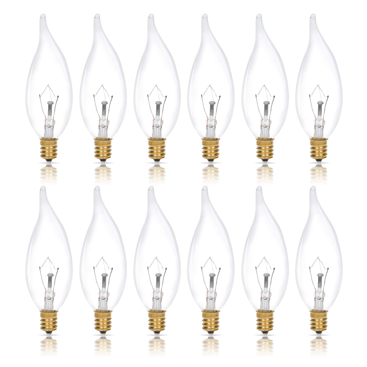 Simba Lighting Candelabra Flame Tip Clear Ca10 25W E12 Base (12 Pack) Decorative Incandescent Light Bulbs 120V For Chandeliers, Ceiling Fan Lights, Pendants, Wall Sconces, Dimmable, Warm White 2700K