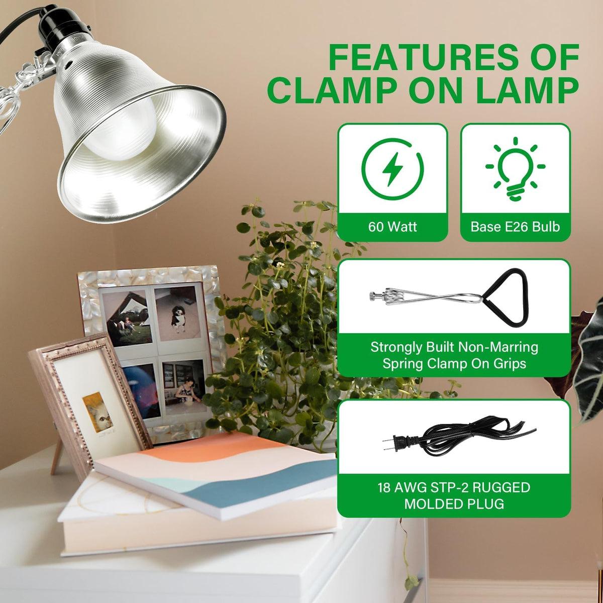 Simple Deluxe Clamp Light With 5.5 Inch Adjustable Aluminum Reflector, Suit For E26 Socket Max 60 Watt Lamp (No Bulb Included),