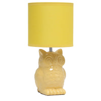 Introducing the Simple Designs Owl Table Lamp, a delightful addition to your home décor that combines functionality with a charming design. Standing at a convenient 12.8 inches tall, this lamp is perfect for various settings, including children's rooms, nurseries, or as a whimsical accent piece in any living area. The unique owl-shaped base, available in a vibrant Dandelion Yellow, adds a playful touch to your space while providing essential lighting.