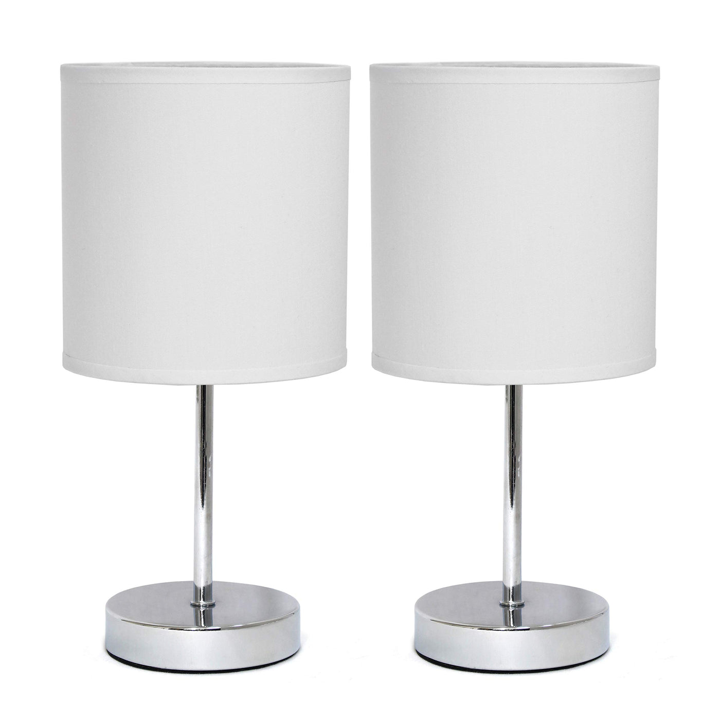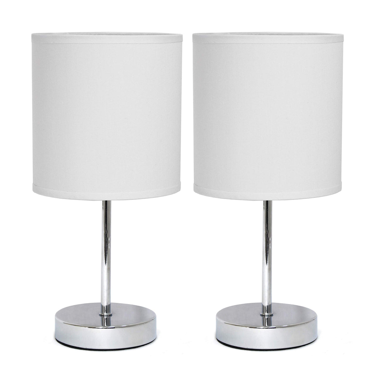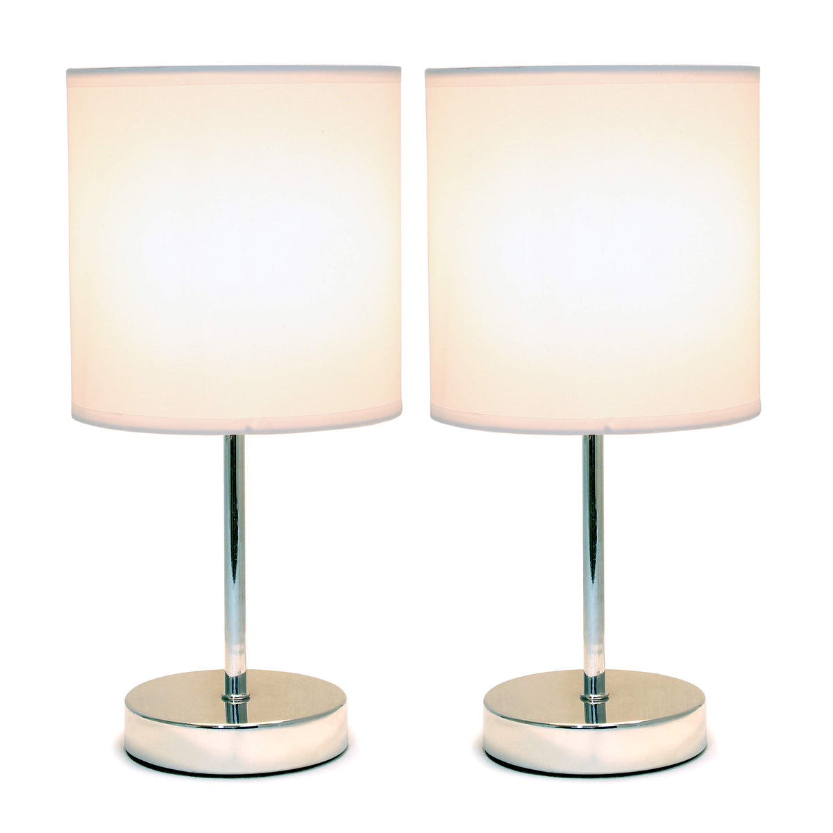 Simple Designs 2-Pack Chrome Mini Table Lamps With Fabric Shade, White, No Bulb