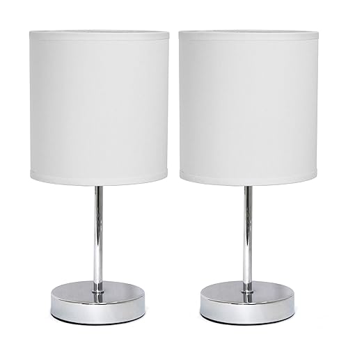 Illuminate your space with the Simple Designs LT2007-WHT-2PK table lamps, designed to bring both style and functionality to any room. These lamps feature elegant fabric shades paired with sleek chrome bases, making them perfect additions to your living room, bedroom, office, kids' room, or college dorm. Each lamp measures 11.81" in height with a shade diameter of 5.51", providing an ideal size that fits seamlessly on any tabletop or bedside stand.