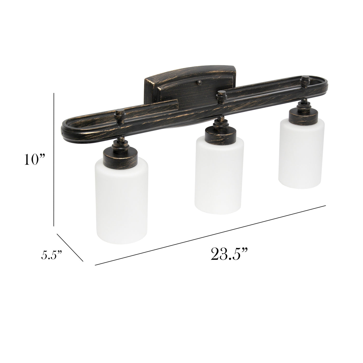 Simple Designs 23.5'' Modern 3 Light Metal Oval Loop and Milk White Cylinder Shape Glass Shades with Rectangular Backplate Oil Rubbed Bronze