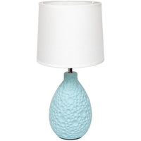 Illuminate your space with elegance and style using the Simple Designs Textured Stucco Ceramic Oval Table Lamp in a soothing Blue hue. This charming lamp combines functionality with a contemporary design, making it a perfect addition to various settings.