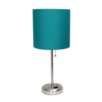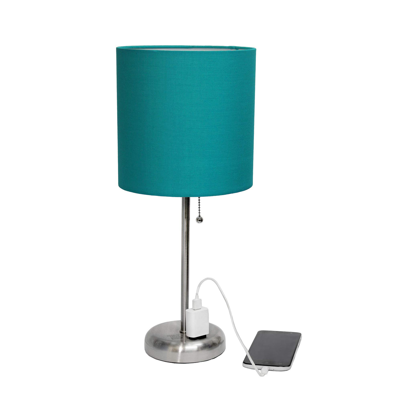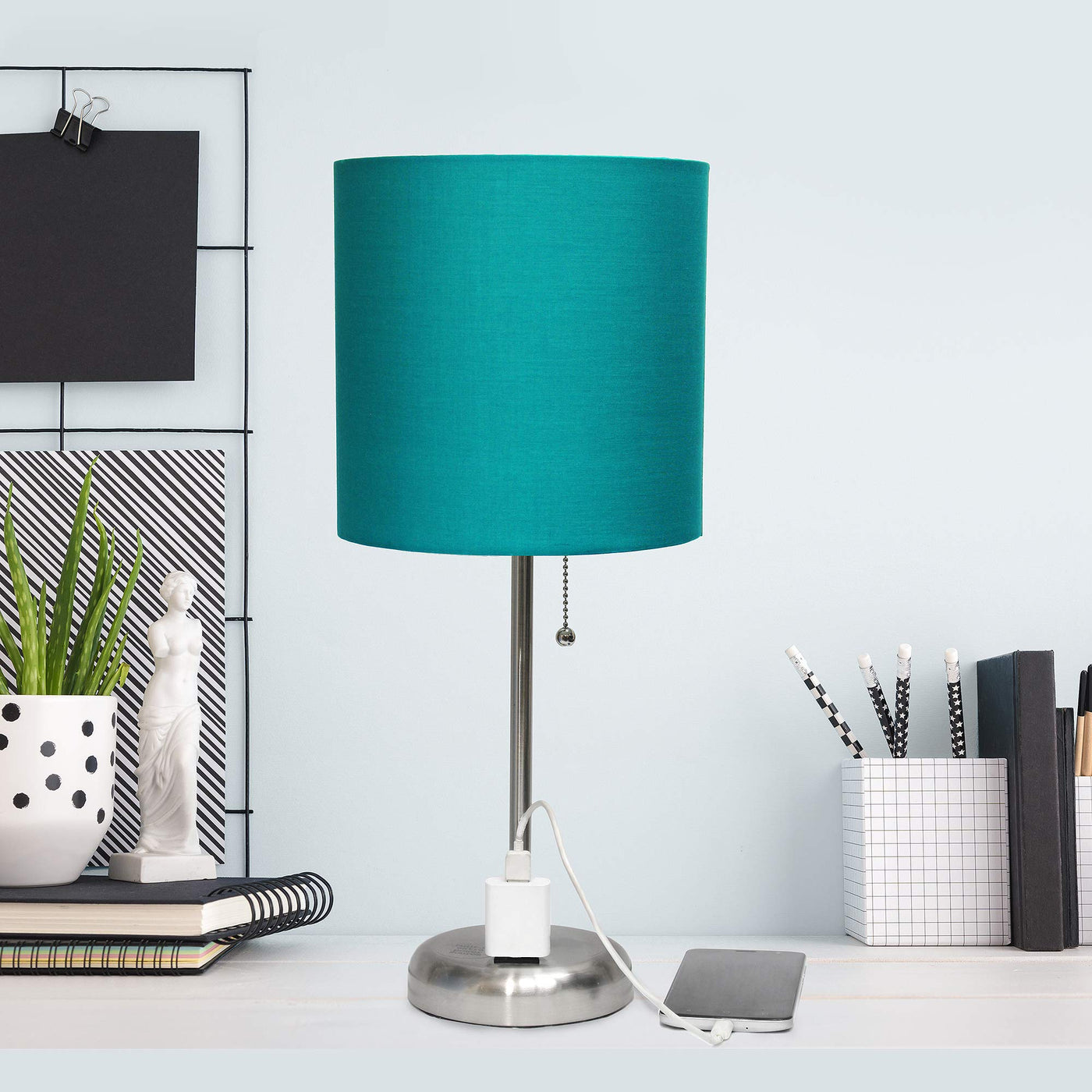 Simple Designs Dark Turquoise Table Lamp With Fabric Shade And Charging Base