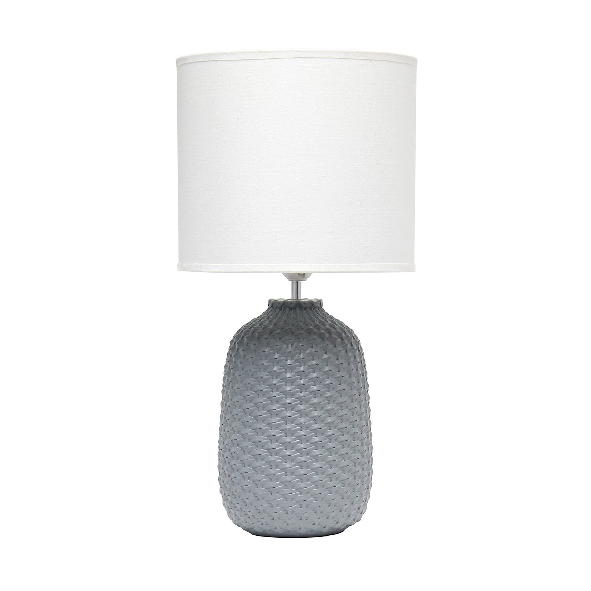 Illuminate your space with the Simple Designs Ceramic Table Lamp, a perfect blend of traditional elegance and modern flair. This beautifully textured oblong lamp base, crafted from high-quality ceramic, is available in a variety of colors, making it a versatile addition to your home décor. Paired with a stylish white drum fabric shade, this lamp not only enhances your lighting but also serves as a chic statement piece in any room.
