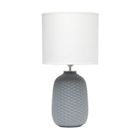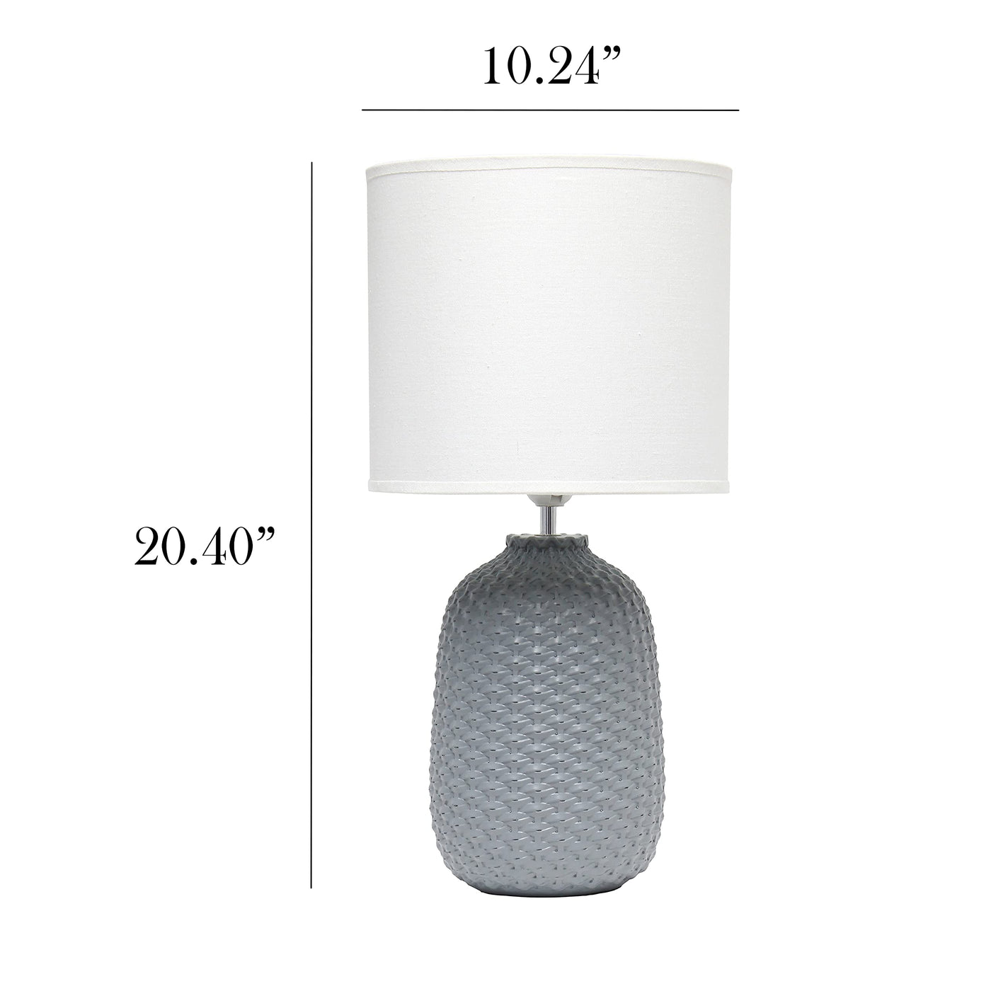Simple Designs Gray Ceramic Bedside Table Lamp With White Drum Shade, 20.4" Tall