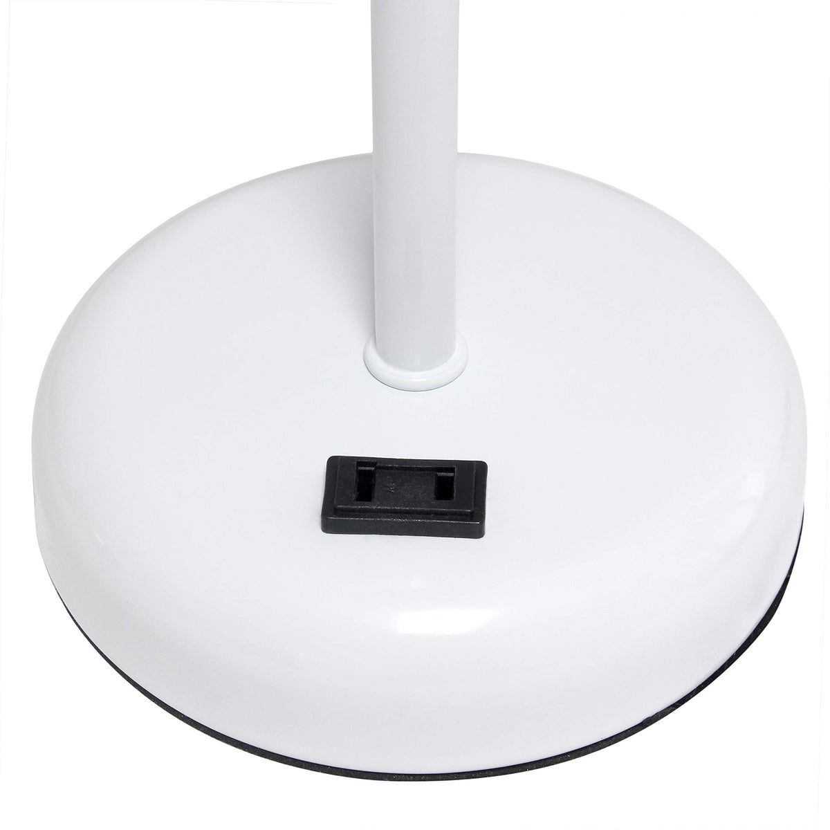 This fun and fashionable lamp set features 2 white bases and a pair of gray fabric shades. Each come equipped with a 2 prong outlet seated in the base for use to charge mobile phones, handheld games, tablets, and other small electronics. These lamps will add a fabulous flair to any room. Perfect for bedrooms, kids and teens, college dorms, nurseries, or fun offices!