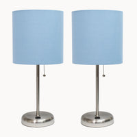 Simple Designs Lc2002-Blu-2Pk Brushed Steel Stick Table Lamp Set With Usb Charging Port And Blue Fabric Shades, 2 Pack Set