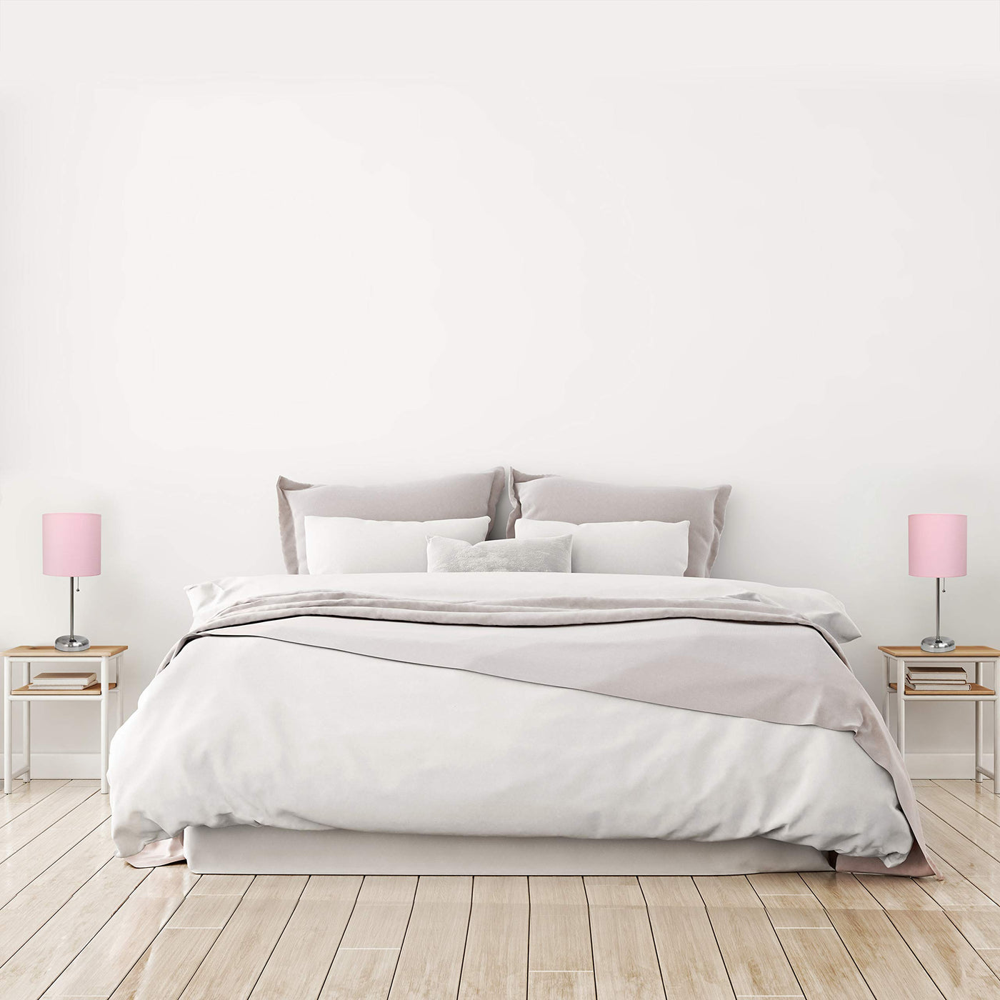 Simple Designs Lc2002-Lpk-2Pk Brushed Steel Stick Table Lamp Set With Usb Charging Port And Light Pink Fabric Shades, 2 Pack Set