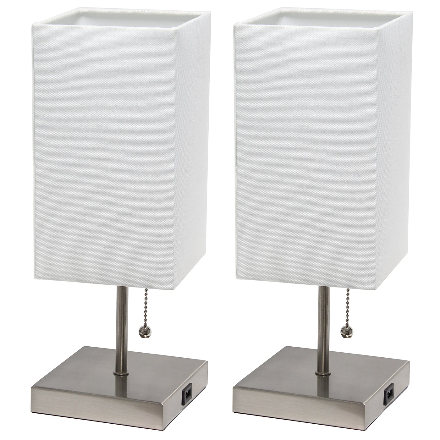 Simple Designs Lc2003-Wht-2Pk Small 2 Pack Usb Charging Bedside Lamp Set, Brushed Steel/White