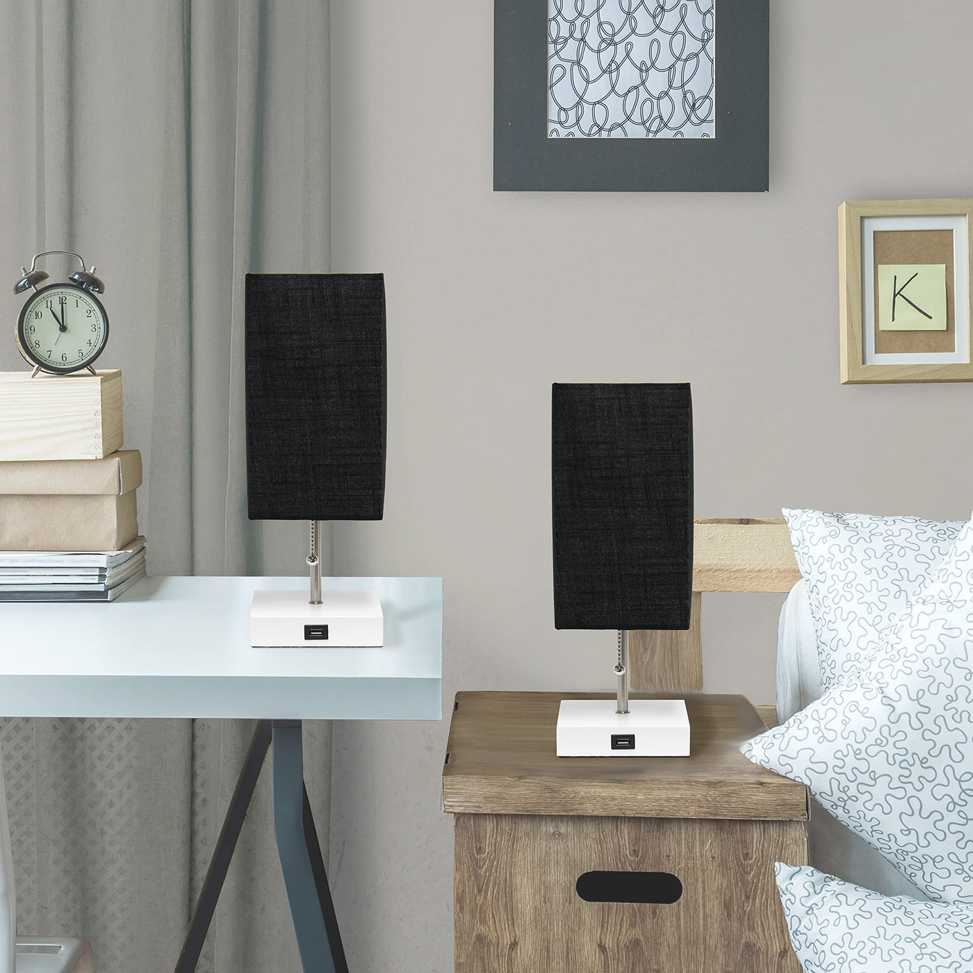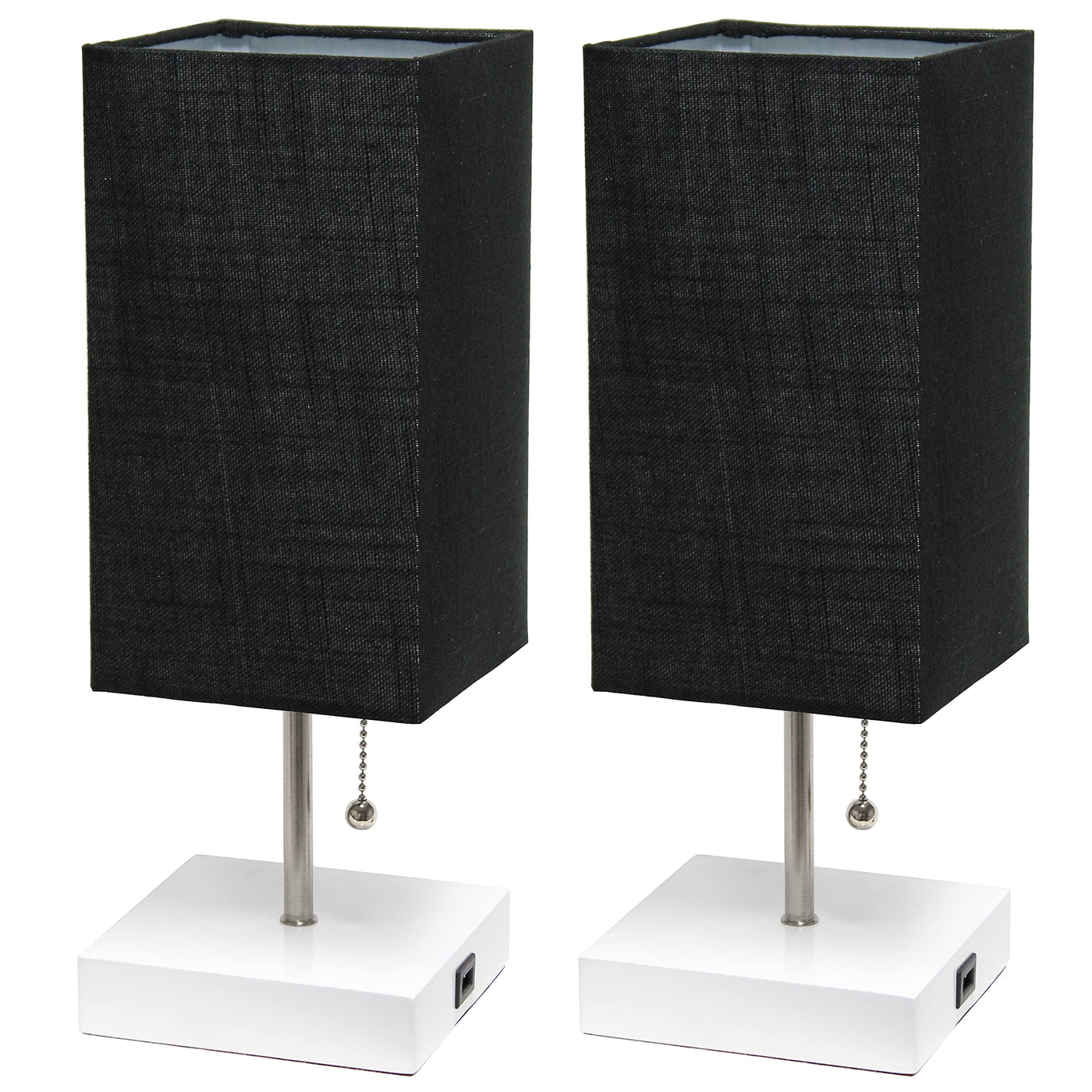Simple Designs Lc2004-Baw-2Pk Usb Charging Port 2 Pack Bedside Lamp Set, White/Black