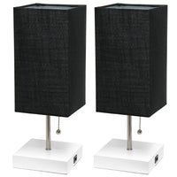 White base with USB charging port on base | Rectangular fabric shade | 2 table lamps in set | Each lamp uses 1 x 40W equivalent Type A medium base bulb (not included) | Features a USB Port on base for charging your phone or other devices