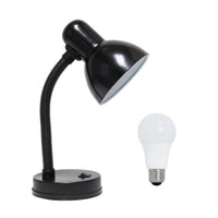 A nice, low-cost, and functional desk lamp to meet your basic lighting needs. This desk lamp features a painted plastic base and metal shade, an included LED bulb, flexible hose neck, and ON/OFF switch located on the base for your convenience. Perfect for office, kids room, or college dorm!