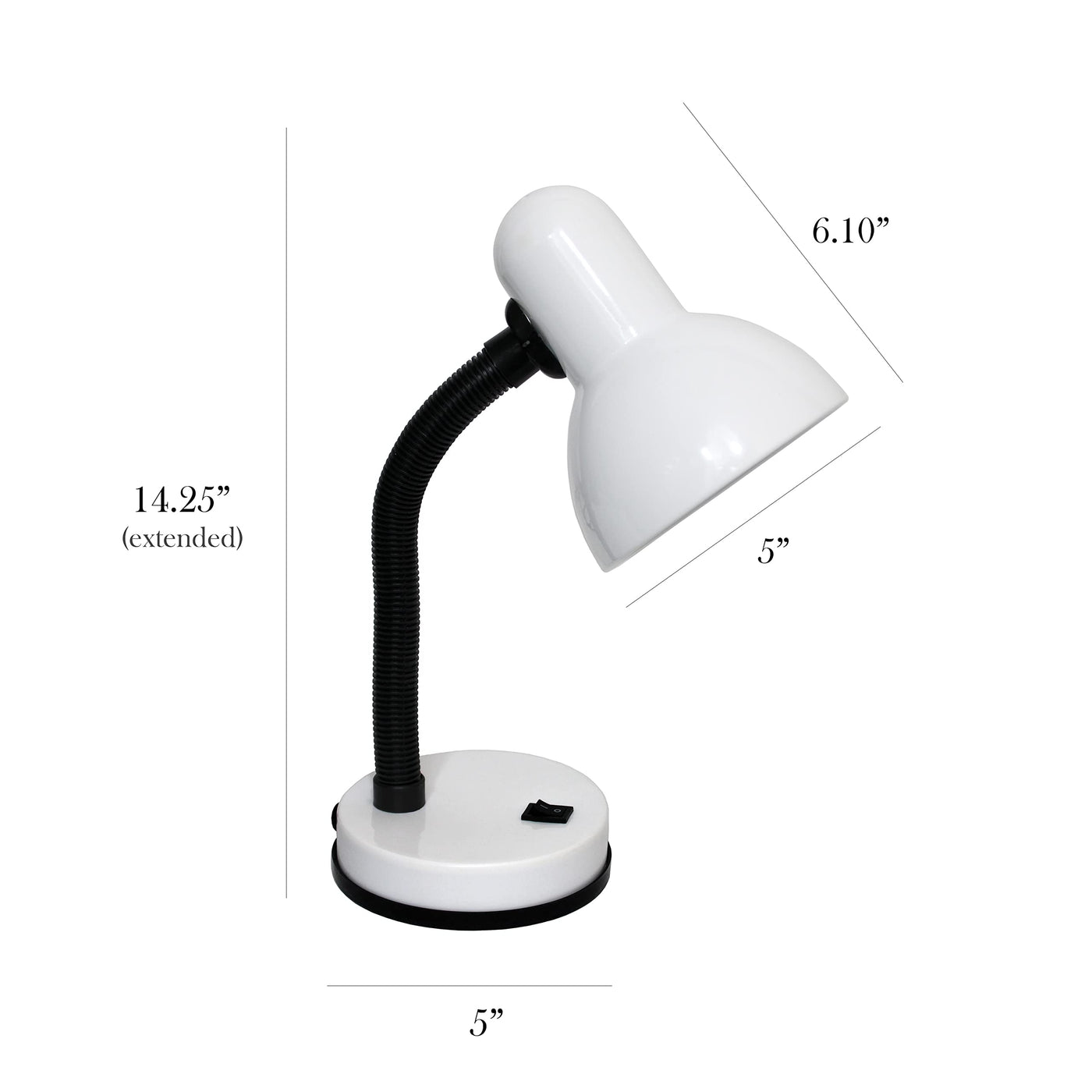 Simple Designs Ld1003-Wht Basic Metal Desk Lamp With Flexible Hose Neck For Office, Living Room, Bedroom, College Dorm, Bookshelf, White (Pack Of 1)