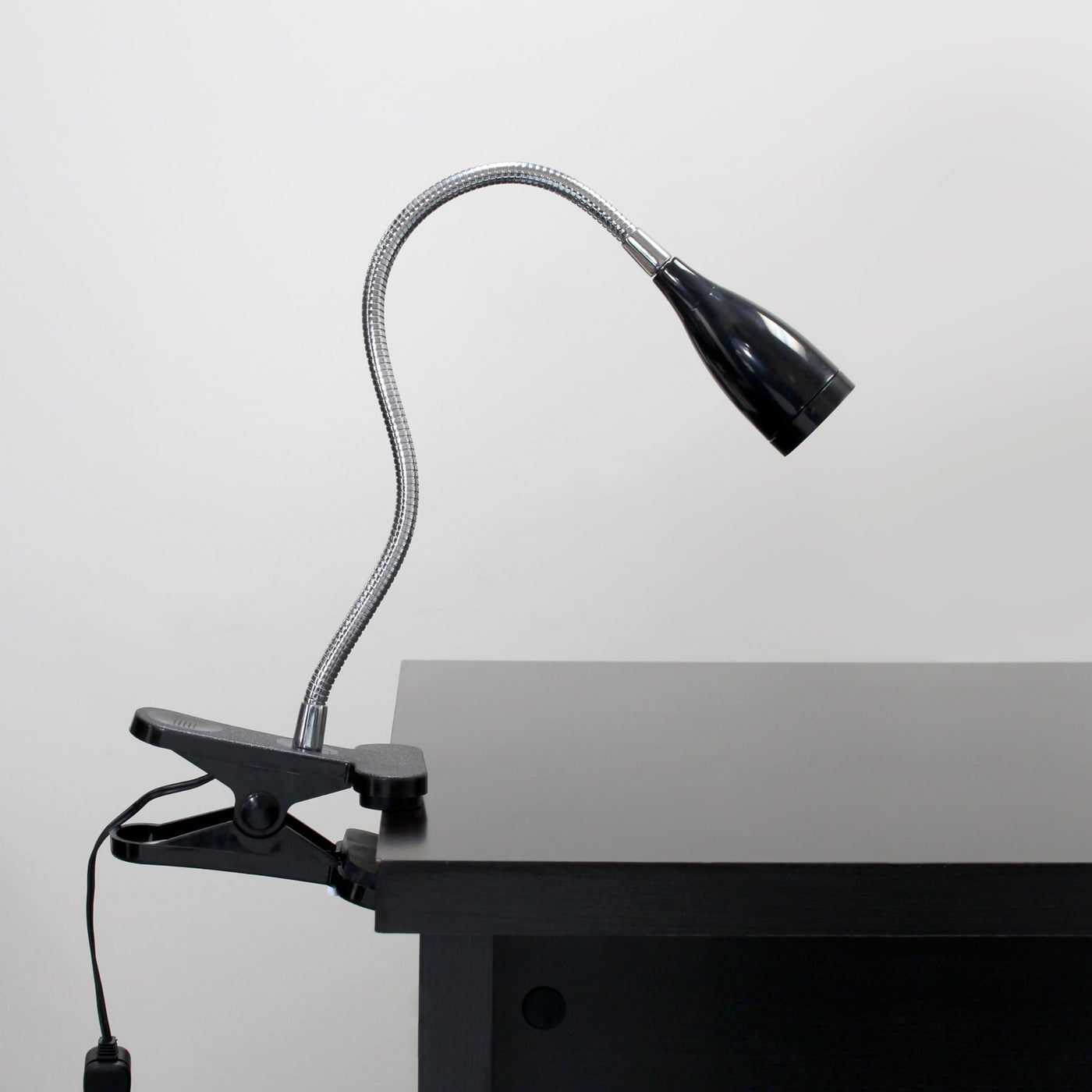 Style and functionality meet with this LED clip lamp. Comes equipped with durable clip. The flexible chrome gooseneck allows you to point the light exactly where you need it. ON/OFF switch is located on the cord for convenience. Perfect for office, kids room, or college dorm!