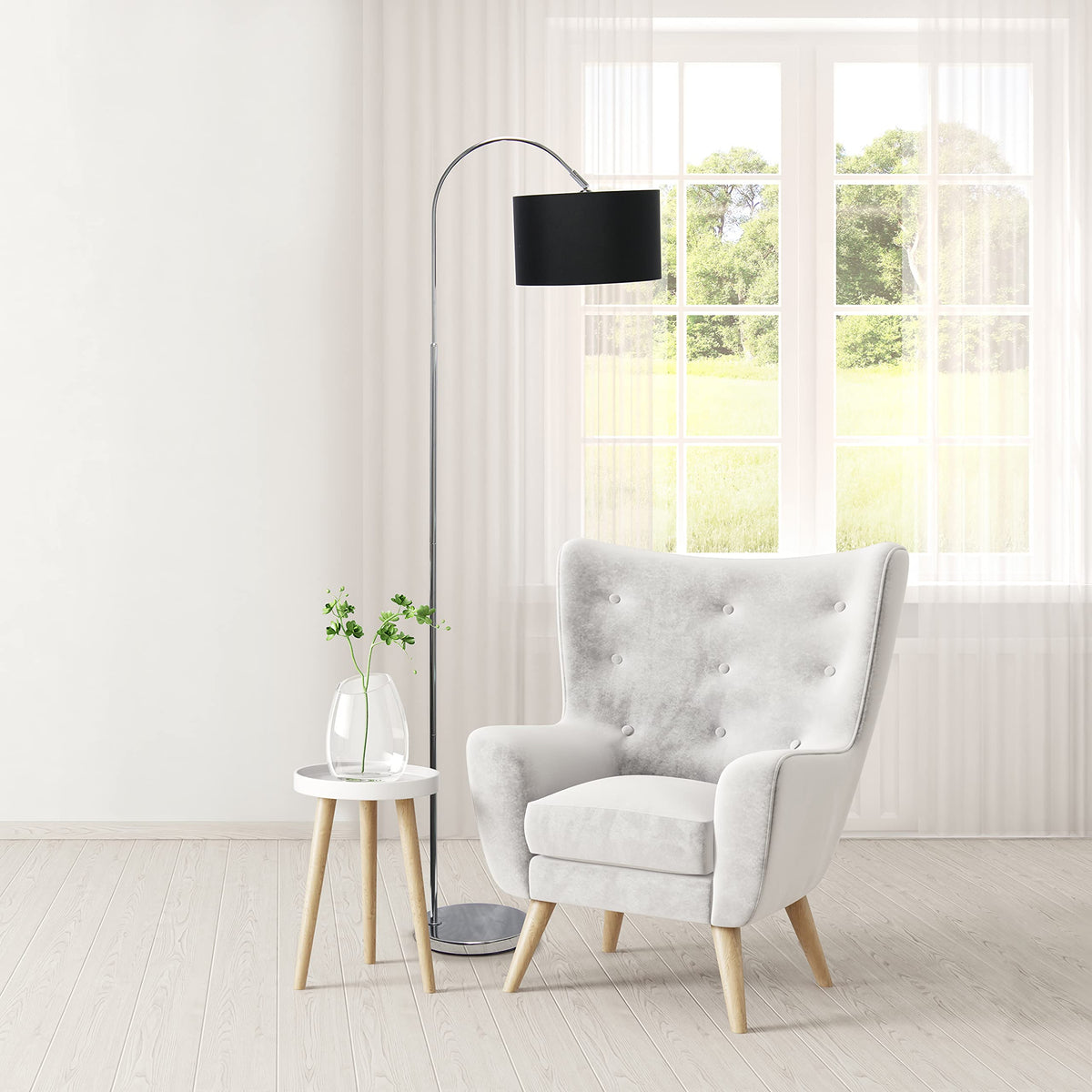 Upgrade your basic floor lamp with this simple but fun arched floor lamp! This item has a fresh look with a brushed nickel finish throughout and a clean black fabric shade. It's the perfect addition to modern or traditional styled rooms!