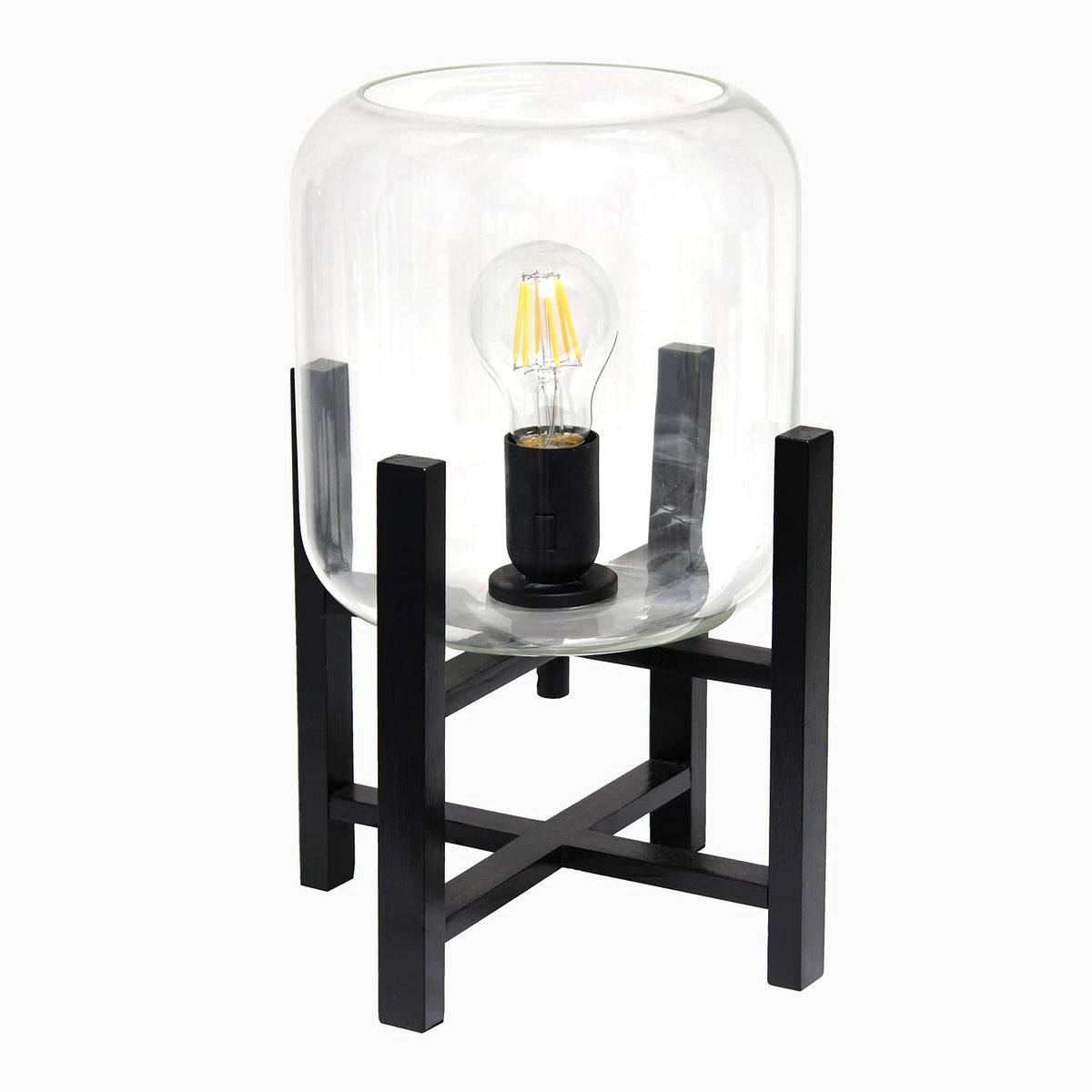 Black wood base | Clear glass shade | Easily accessible on/off switch located on the cord | Uses 1 x 40W equivalent medium type A base bulb (not included). For full vintage look, Type T45 Edison bulb is recommended | Available in additional base and/or shade color options