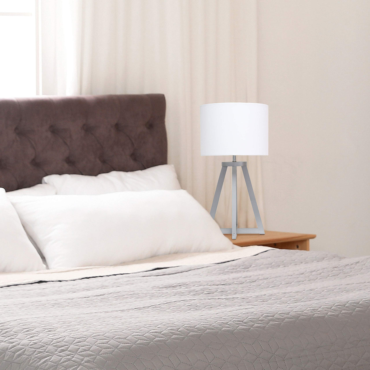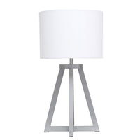Add a touch of simplicity to your home with this contemporary lamp. The soft, white fabric shade compliments the geometric gray wood base for a clean, simple look. Perfect lamp for a bedroom, living area, office, kid's room or college dorm.