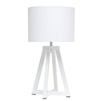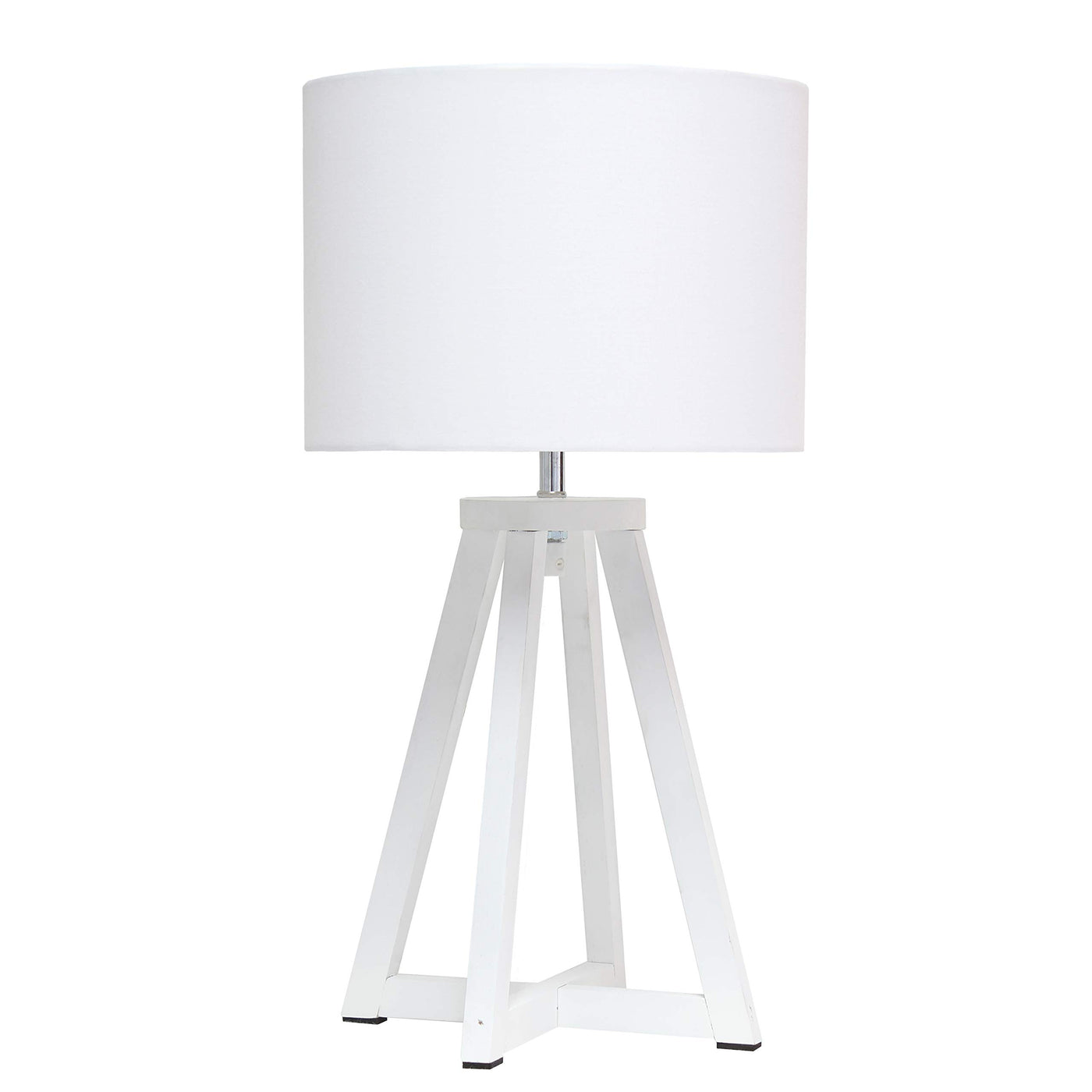 Add a touch of simplicity to your home with this contemporary lamp. The soft, white fabric shade compliments the geometric white wood base for a clean, simple look. Perfect lamp for a bedroom, living area, office, kid's room or college dorm.