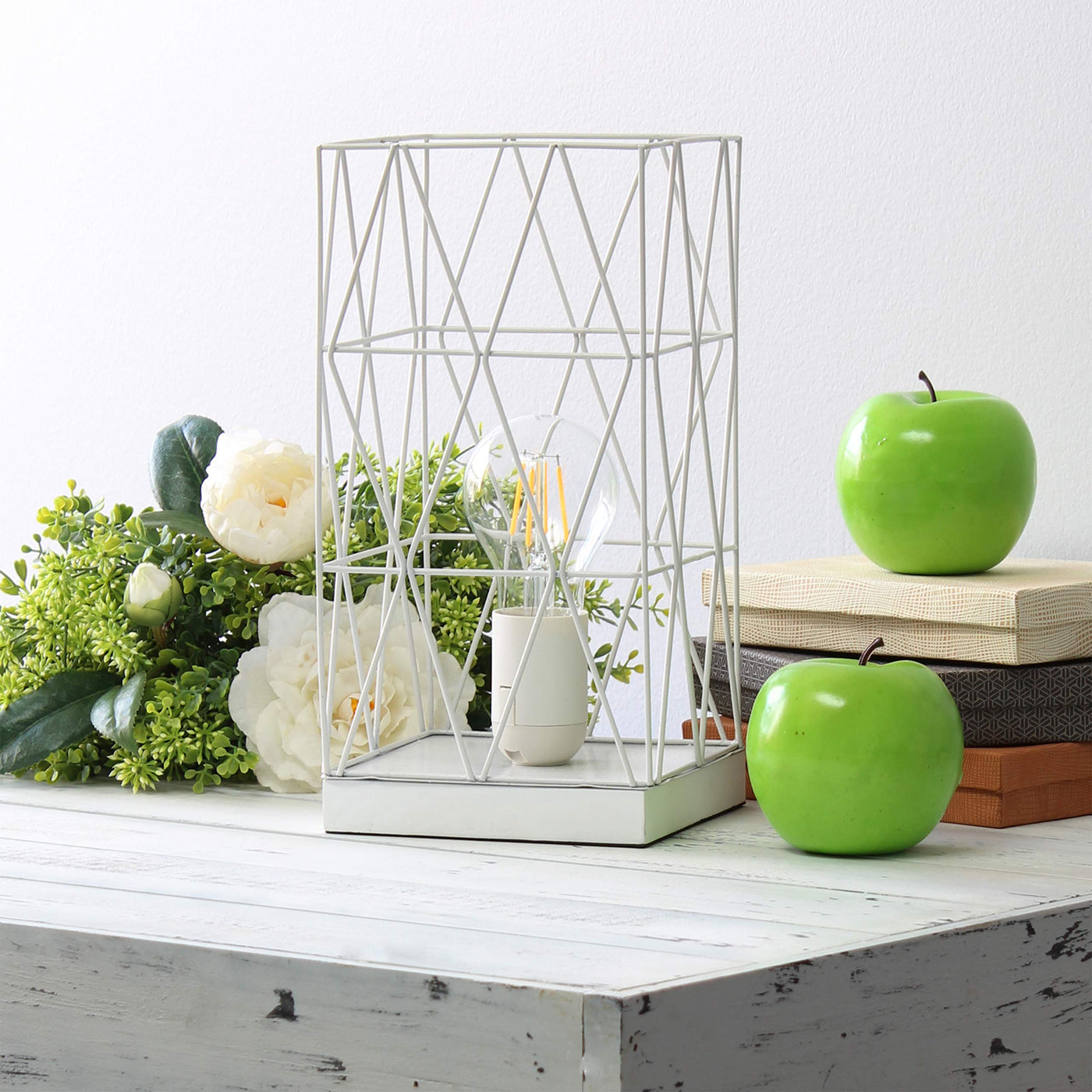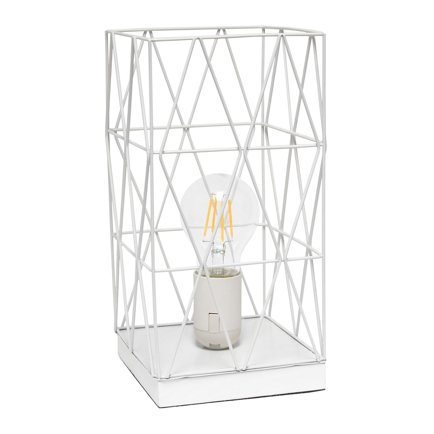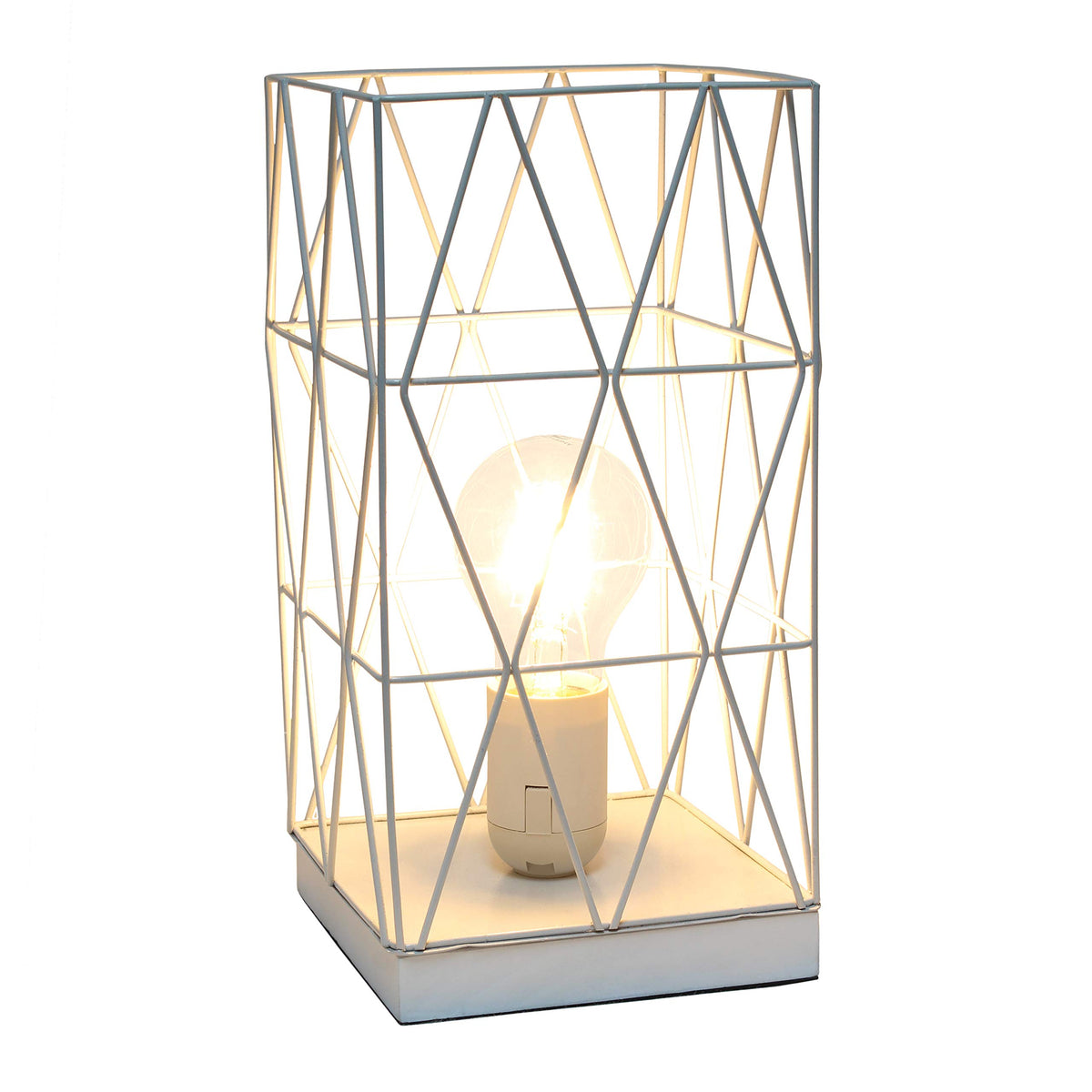 Simple Designs Lt1073-Wht Geometric Square Metal Table Lamp, White