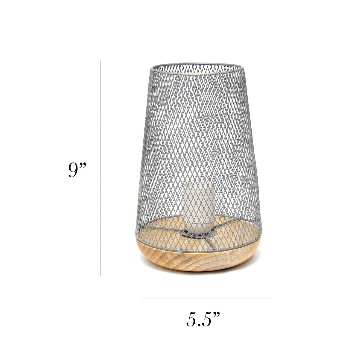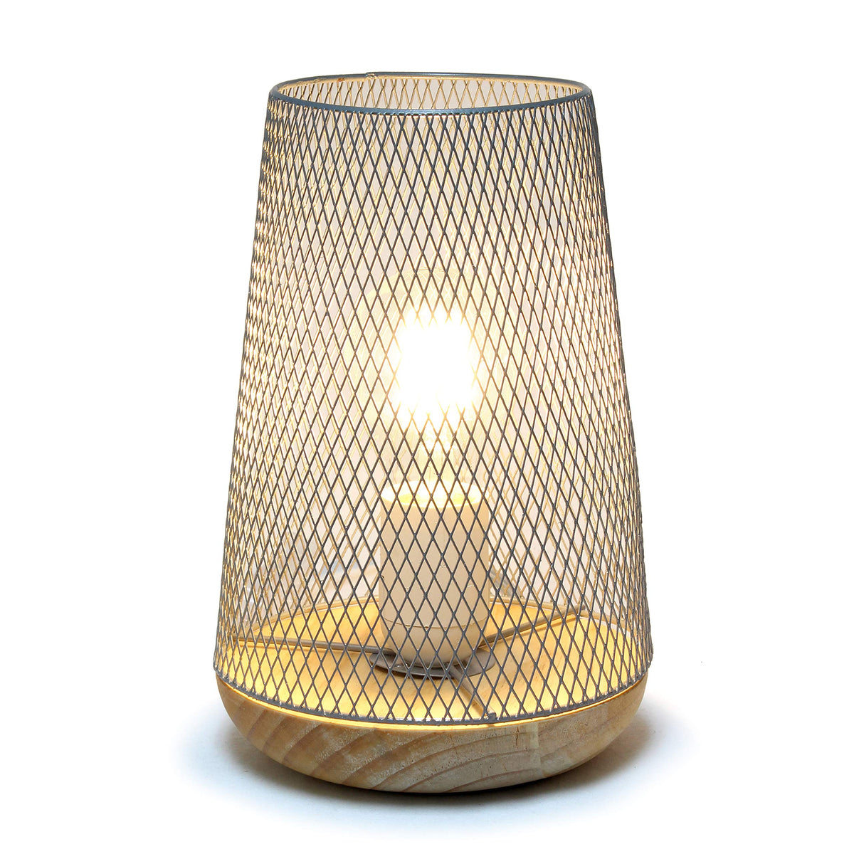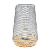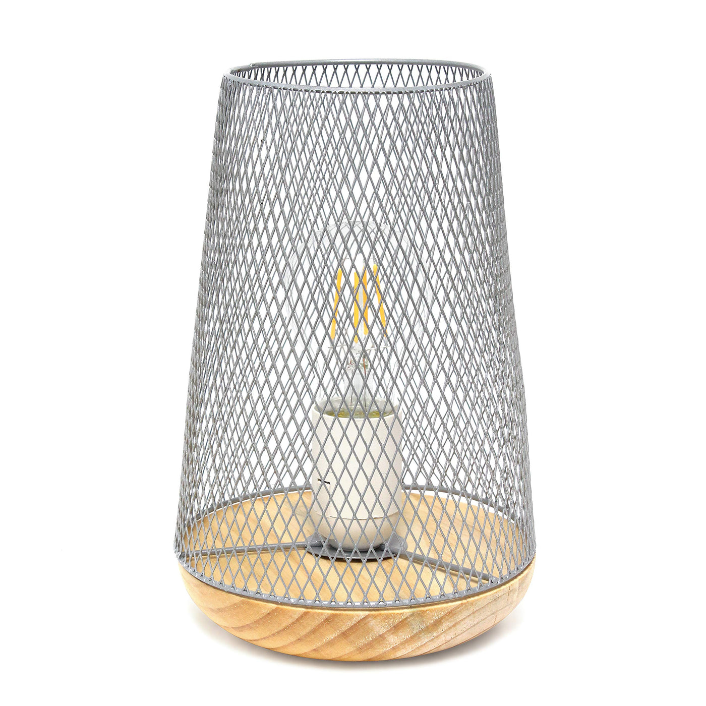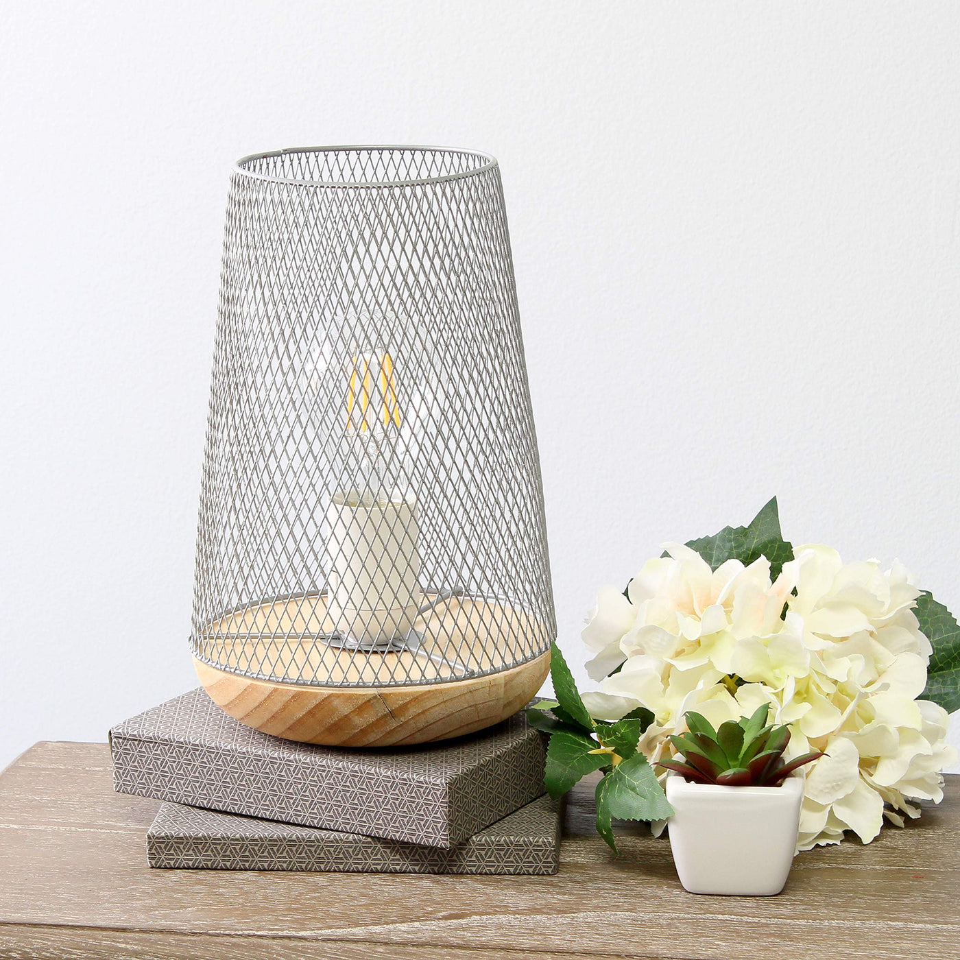 Natural wood base | Gray mesh metal shade | Easily accessible on/off switch located on the cord | Uses 1 x 40W equivalent medium type A base bulb (not included) For full vintage look, Type T45 Edison bulb is recommended | Available in additional color options