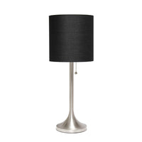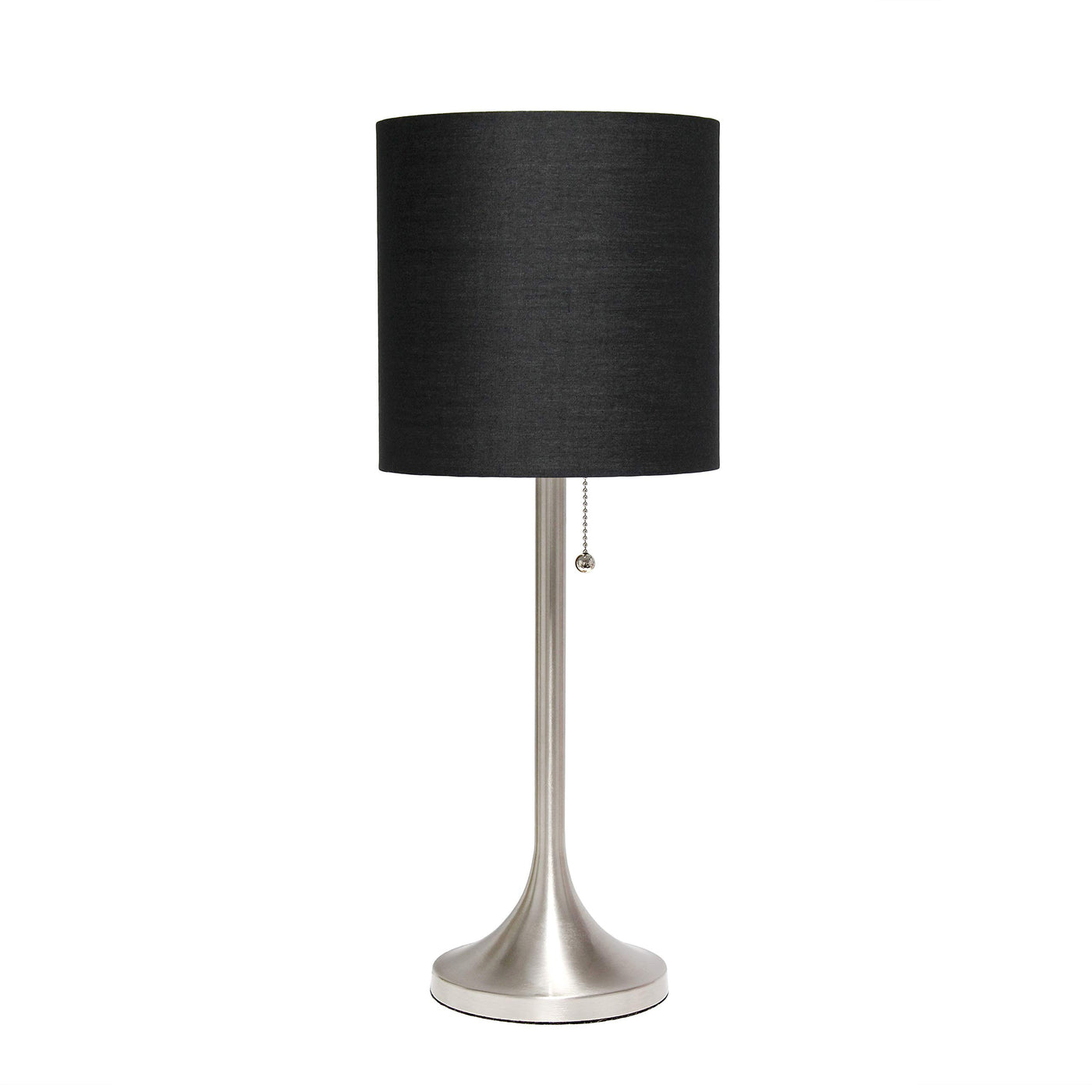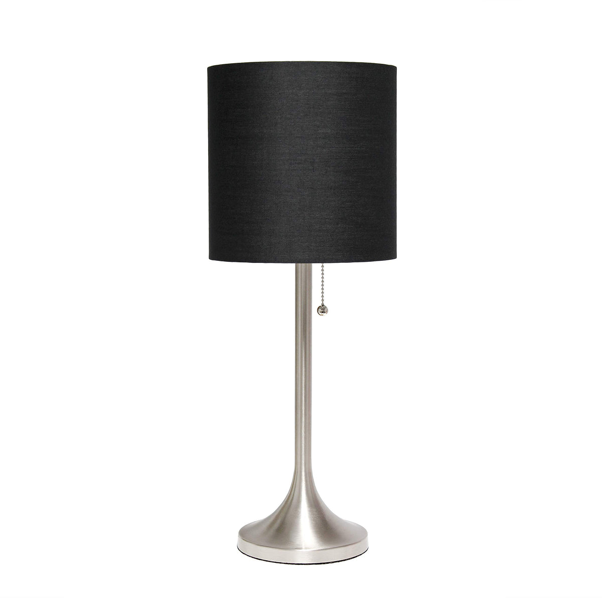 Brushed Nickel metal base | Black fabric shade | Pull chain on/off switch | Uses 1 x 40W medium type A19 base bulb (not included) | Available in additional base and/or shade color options