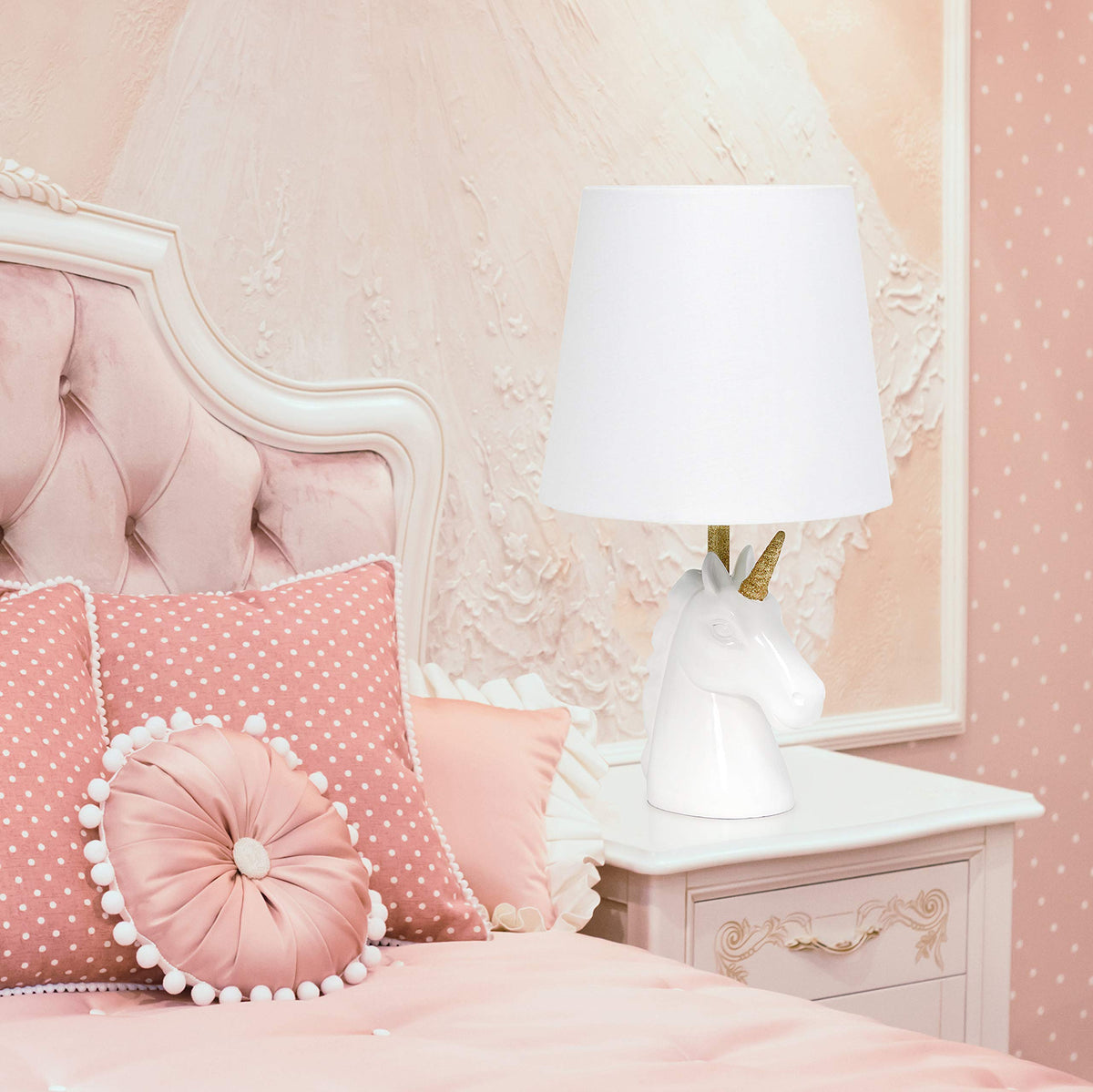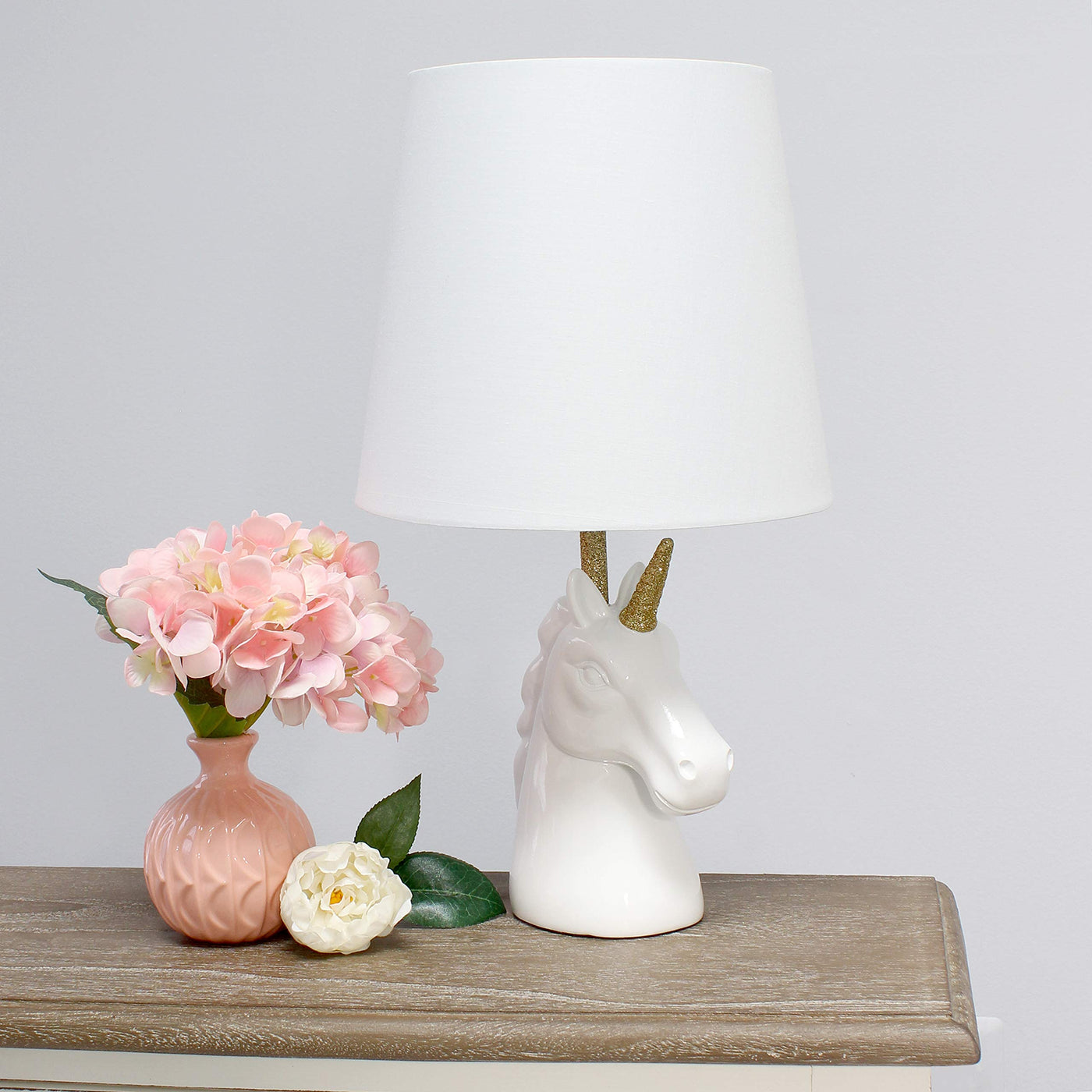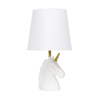 Add a touch of personality to your décor with this fun unicorn lamp! With a white resin base and touches of shimmering gold glitter this lamp is sure to illuminate any room in style. Perfect for bedrooms, kids and teens, college dorms or nurseries!