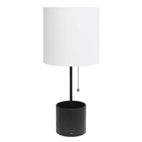 Simple Designs Lt1085-Blk Hammered Metal Organizer Table Lamp With Usb Charging Port And Fabric Shade, Black