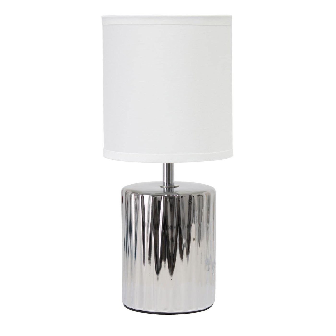 Simple Designs Lt1132-Chr 11.61" Tall Contemporary Ruffled Metallic Chrome Capsule Bedside Table Desk Lamp W White Drum Fabric Shade For Home Decor, Bedroom, Living Room, Entryway, Office