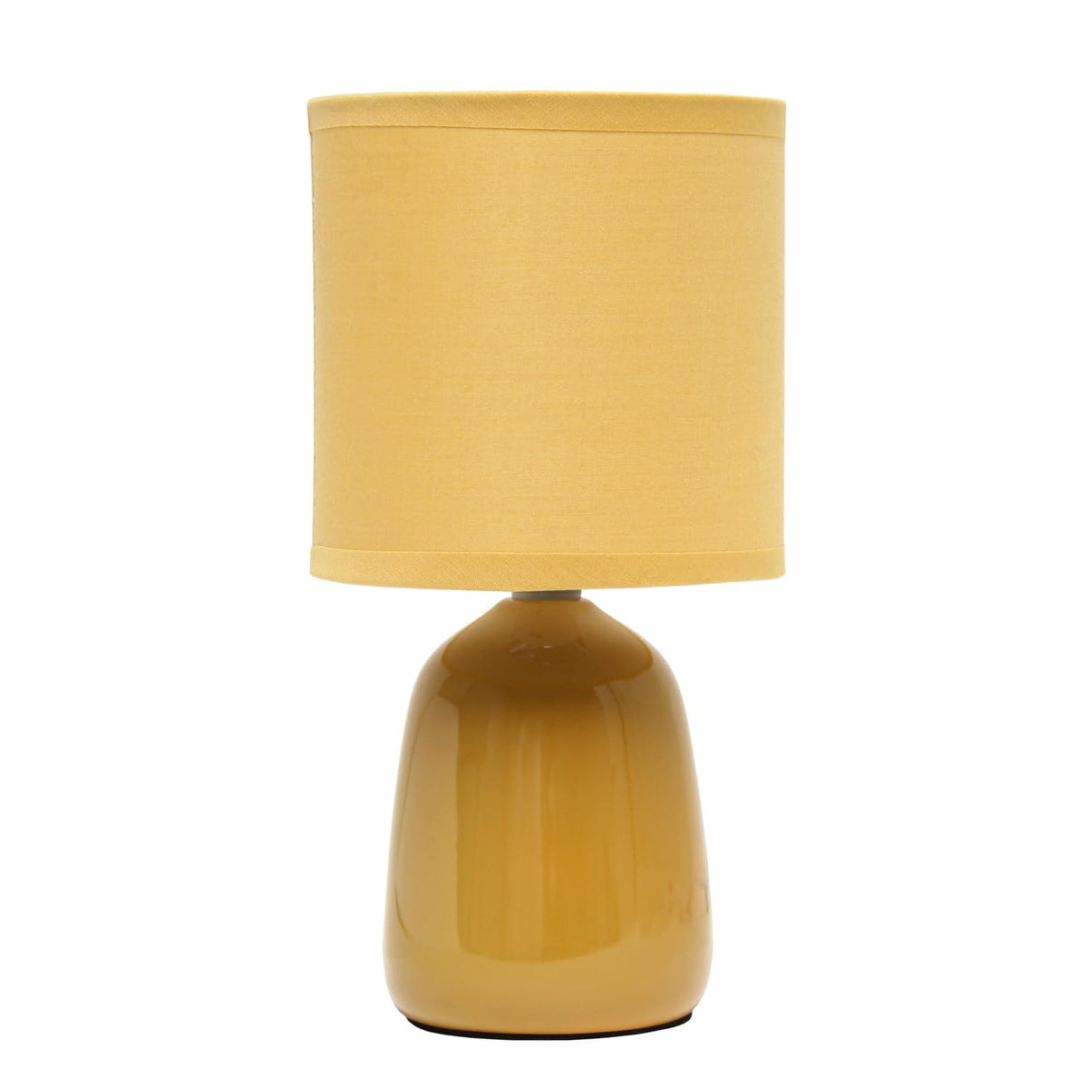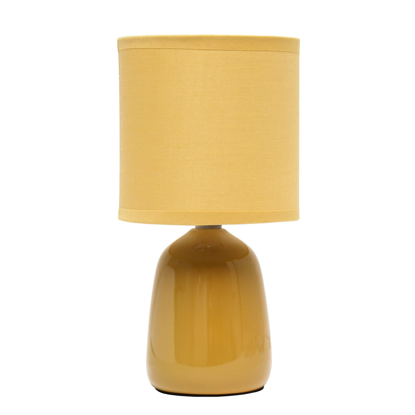 Simple Designs Lt1134-Mst 10.04" Tall Traditional Ceramic Thimble Base Bedside Table Desk Lamp W Matching Fabric Shade For Decor, Nightstand, Bedroom, Living Room, Entryway, Office, Mustard Yellow