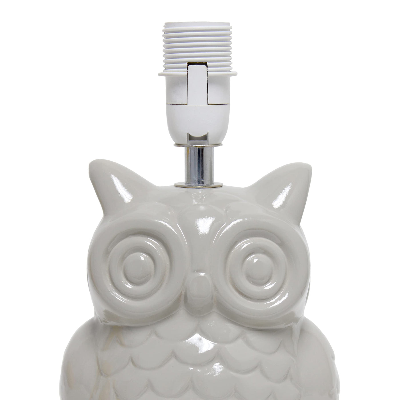 Simple Designs Lt1136-Gry Gray Ceramic Owl Table Lamp 12.8 With Fabric Shade For Bedroom, Living Room, Nursery