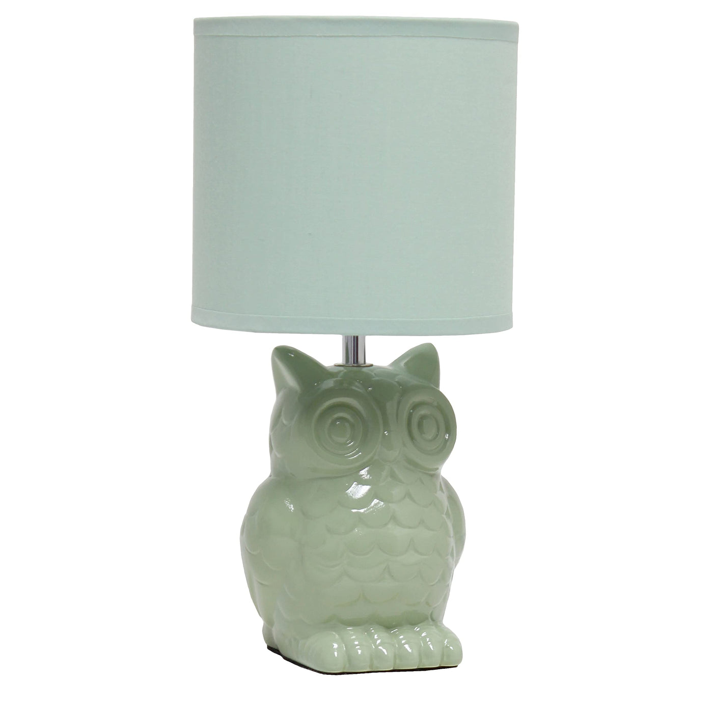 Simple Designs Lt1136-Sge 12.8" Tall Contemporary Ceramic Owl Bedside Table Desk Lamp W Matching Fabric Shade For Decor, Bedroom, Nightstand, Living Room, Entryway, Kids' Room, Nursery, Sage Green
