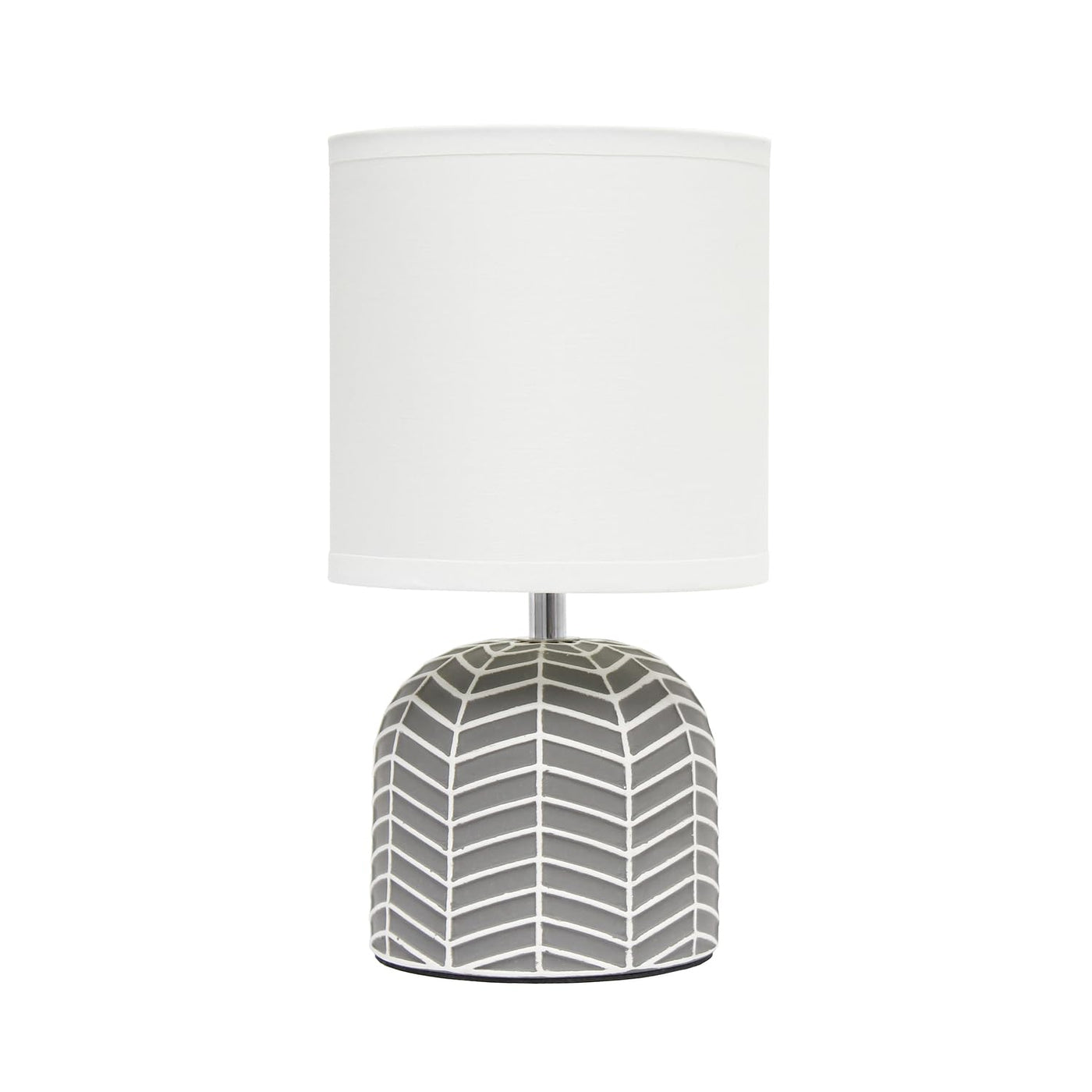 Simple Designs Lt1137-Gry 10.43" Petite Contemporary Webbed Waves Base Bedside Table Desk Lamp W White Fabric Drum Shade For Home Decor, Bedroom, Living Room, Entryway, Office, Gray
