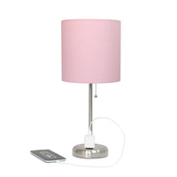 Simple Designs Lt1144-Lpk Sleek And Slender Brushed Steel Table Lamp With Charging Outlet, For Bedroom, Living Room, Entryway, Office, Dining Room, Study, Light Pink Shade