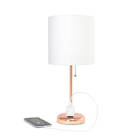 Simple Designs Lt1144-Rgd Sleek And Slender Rose Gold Table Lamp With Charging Outlet, For Bedroom, Living Room, Entryway, Office, Dining Room, Study, White Shade
